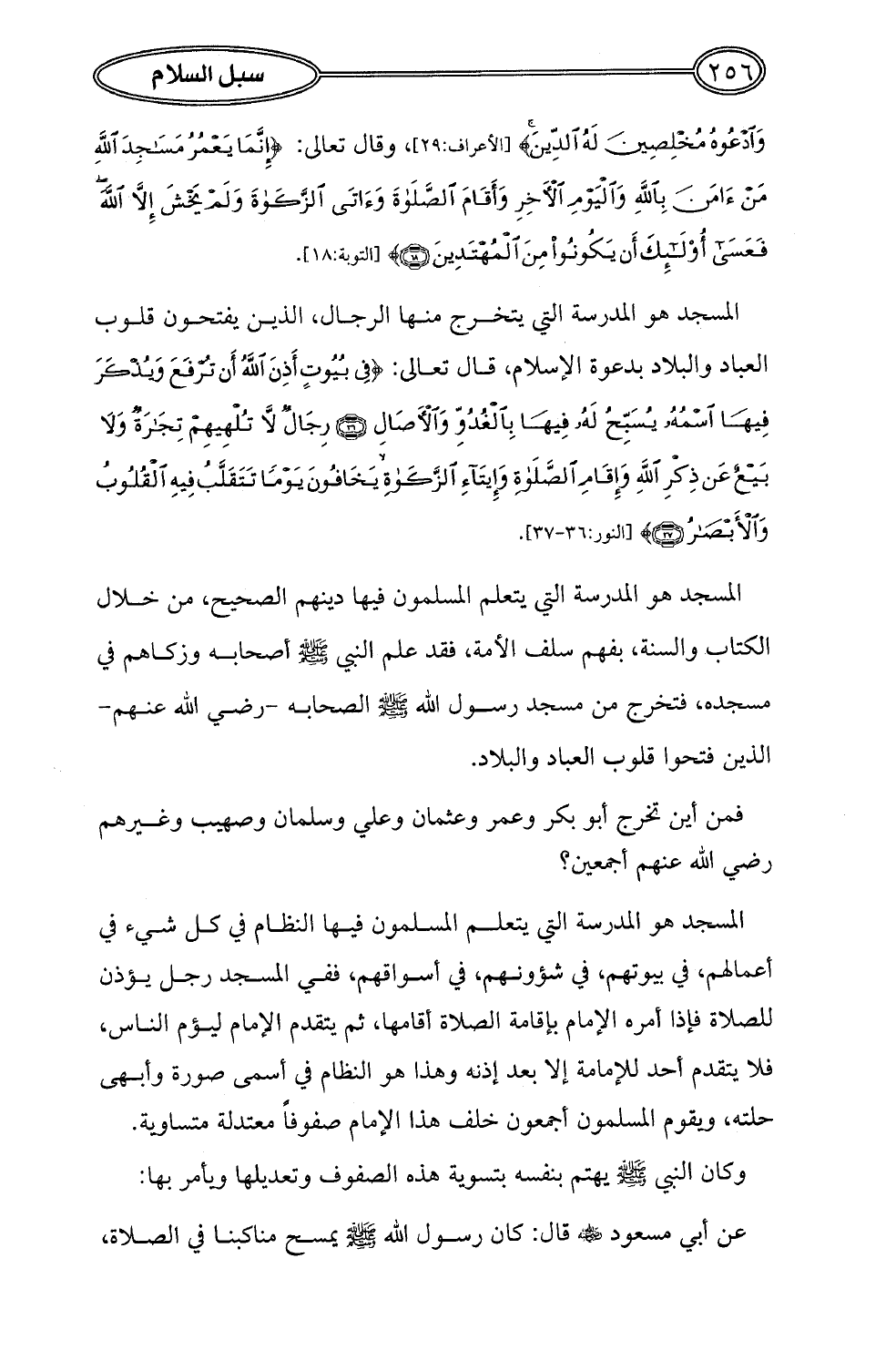 المسجد هو المدرسة التي يتخرج منها الرجال، الذين يفتحون قلوب العباد والبلاد بدعوة الإِسلام، قال تعالى: {فِي بُيُوتٍ أَذِنَ اللَّهُ أَنْ تُرْفَعَ وَيُذْكَرَ فِيهَا اسْمُهُ يُسَبِّحُ لَهُ فِيهَا بِالْغُدُوِّ وَالْآصَالِ (36) رِجَالٌ لَا تُلْهِيهِمْ تِجَارَةٌ وَلَا بَيْعٌ عَنْ ذِكْرِ اللَّهِ وَإِقَامِ الصَّلَاةِ وَإِيتَاءِ الزَّكَاةِ يَخَافُونَ يَوْمًا تَتَقَلَّبُ فِيهِ الْقُلُوبُ وَالْأَبْصَارُ (37)} [النور: 36 - 37].