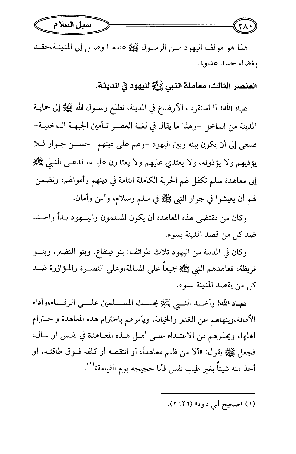 العنصر الثالث: معاملة النبي- صلى الله عليه وسلم - لليهود في المدينة.