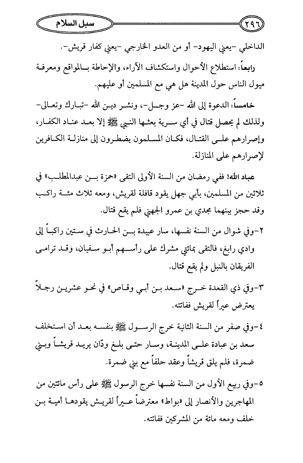 خامساً: الدعوة إلى الله -عز وجل-، ونشر دين الله -تبارك وتعالى- ولذلك لم يحصل قتال في أي سرية بعثها النبي - صلى الله عليه وسلم - إلا بعد عناد الكفار، وإصرارهم على القتال، فكان المسلمون يضطرون إلى منازلة الكافرين لإصرارهم على المنازلة.