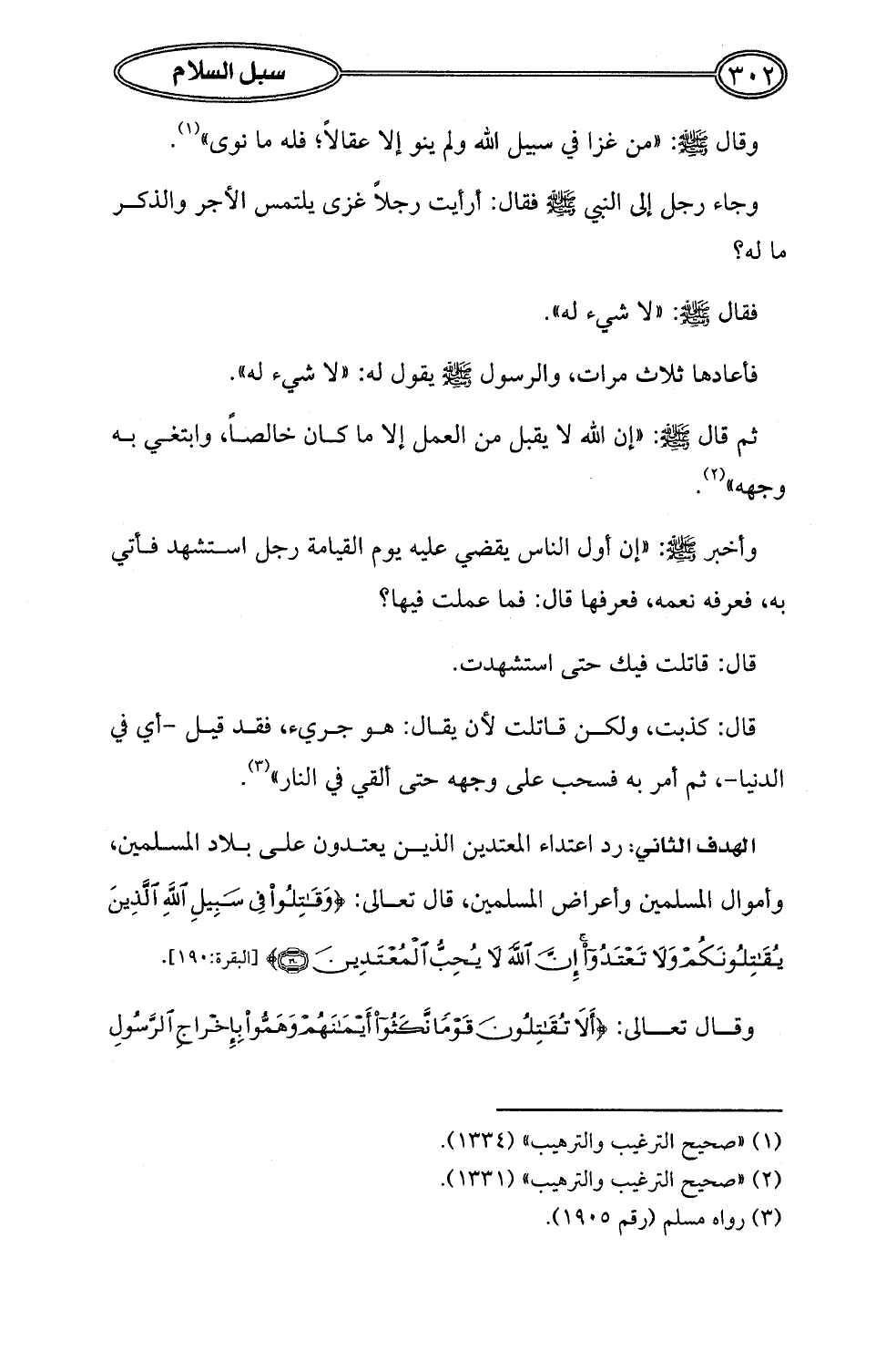 الهدف الثاني: رد اعتداء المعتدين الذين يعتدون على بلاد المسلمين، وأموال المسلمين وأعراض المسلمين، قال تعالى: {وَقَاتِلُوا فِي سَبِيلِ اللَّهِ الَّذِينَ يُقَاتِلُونَكُمْ وَلَا تَعْتَدُوا إِنَّ اللَّهَ لَا يُحِبُّ الْمُعْتَدِينَ (190)} [البقرة: 190].