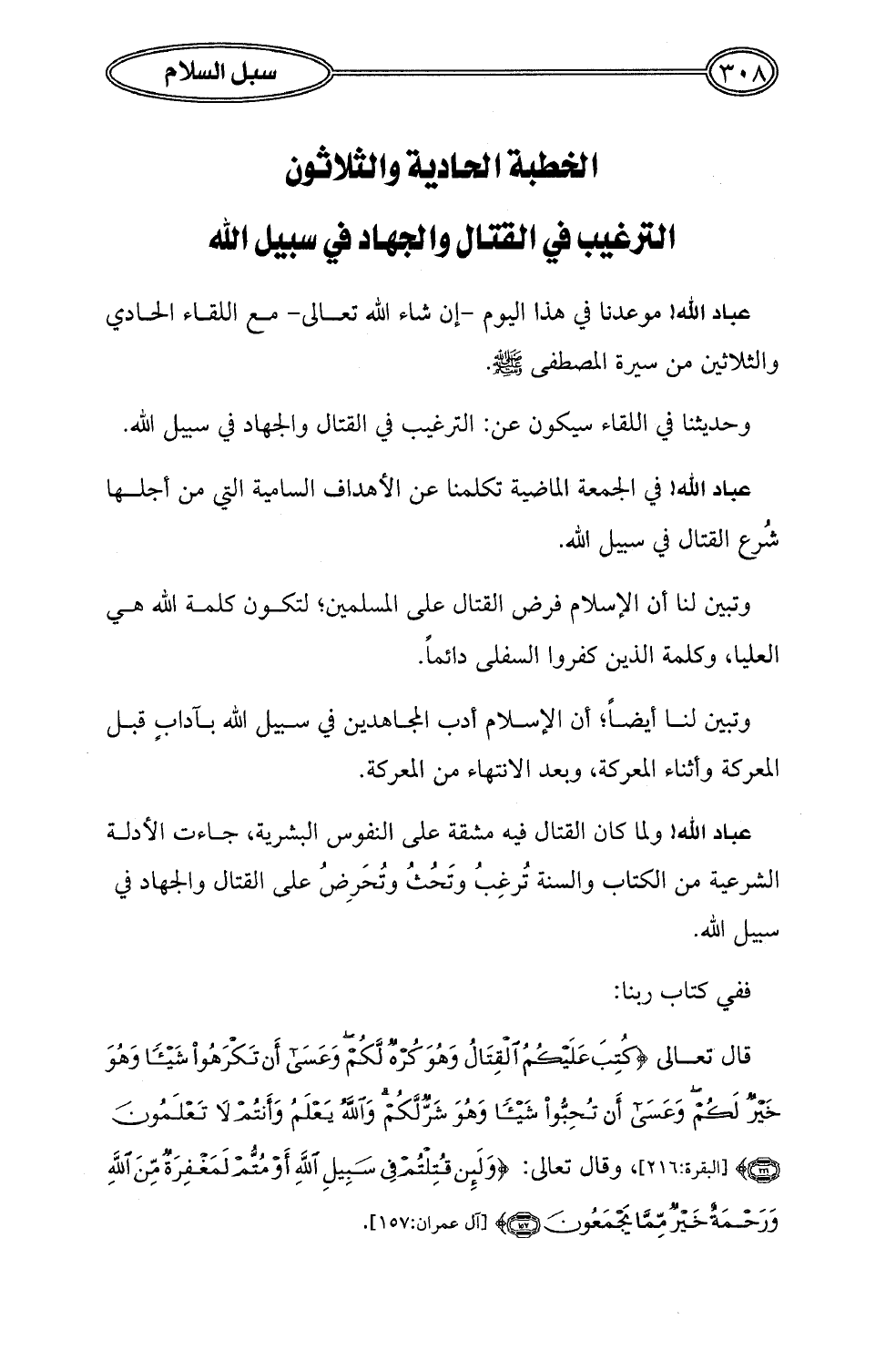 الخطبة الحادية والثلاثون: الترغيب في القتال والجهاد في سبيل الله