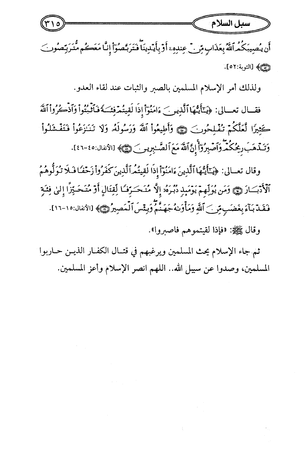 ولذلك أمر الإِسلام المسلمين بالصبر والثبات عند لقاء العدو.