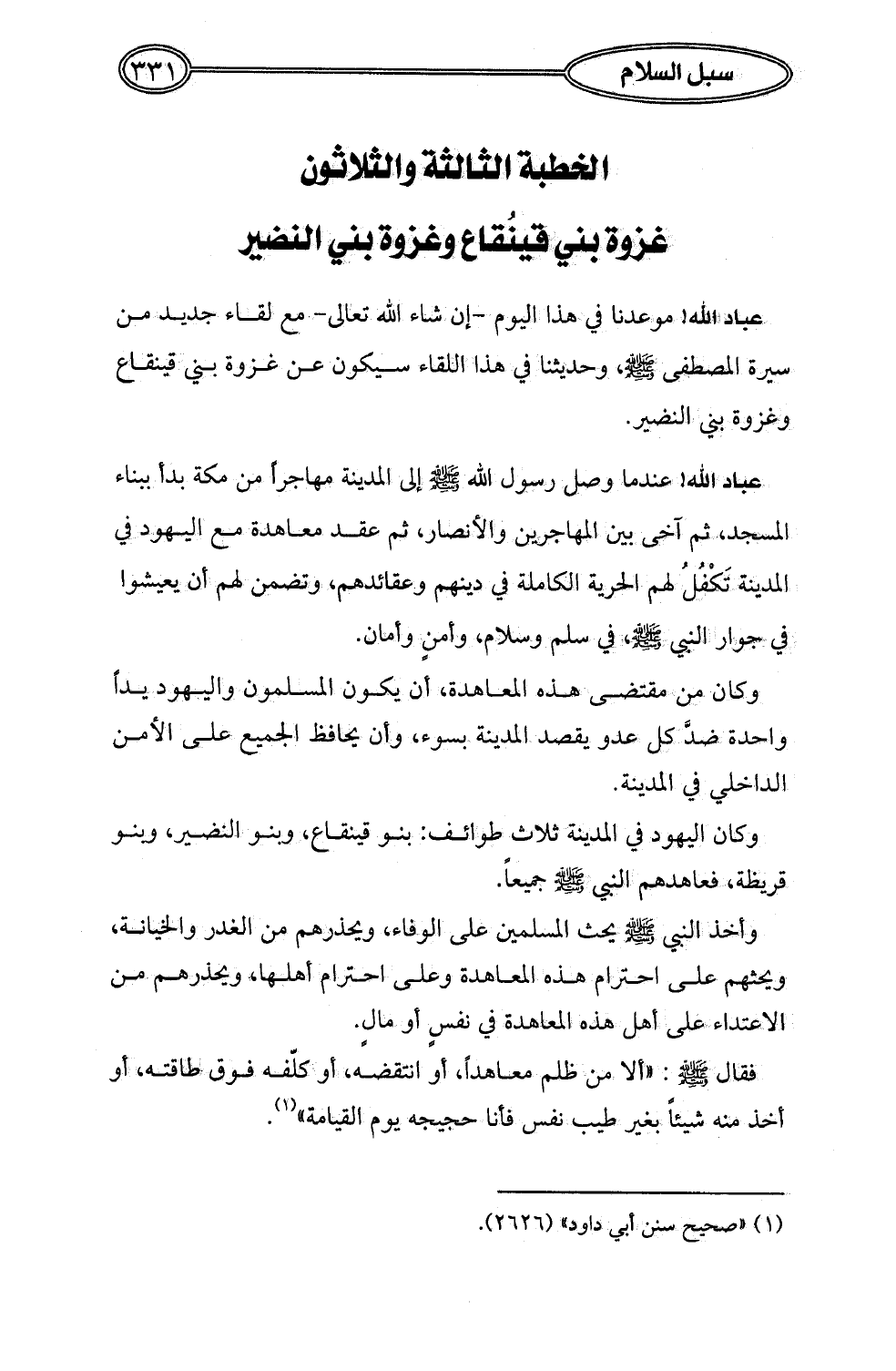 الخطبة الثالثة والثلاثون: غزوة بني قينُقاع وغزوة بني النضير