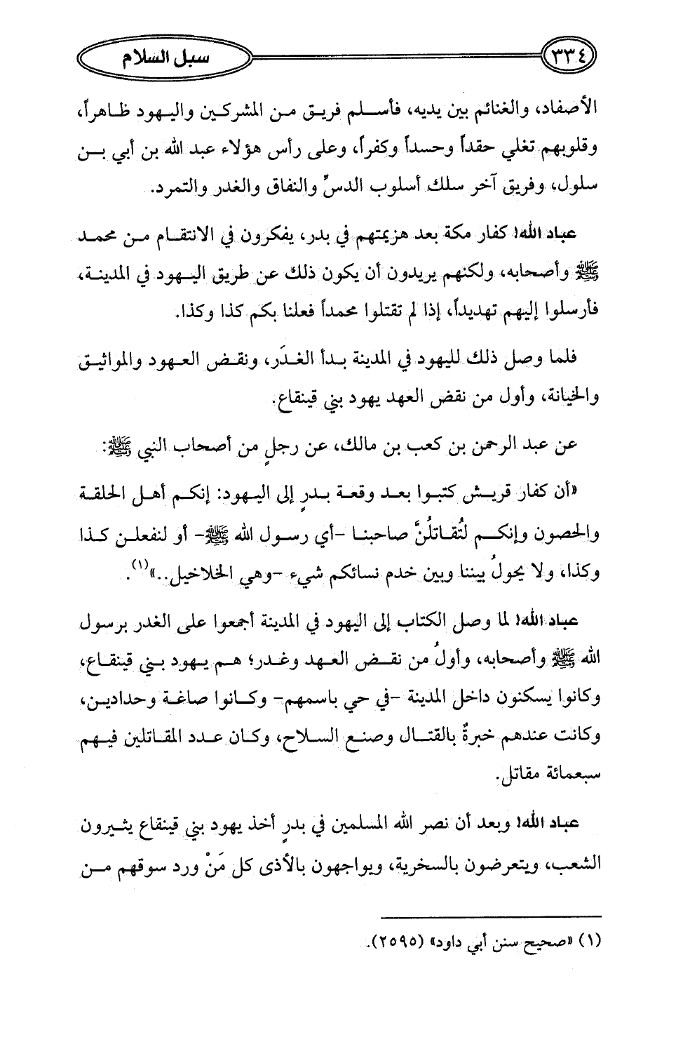فلما وصل ذلك لليهود في المدينة بدأ الغدر، ونقض العهود والمواثيق والخيانة، وأول من نقض العهد يهود بني قينقاع.
