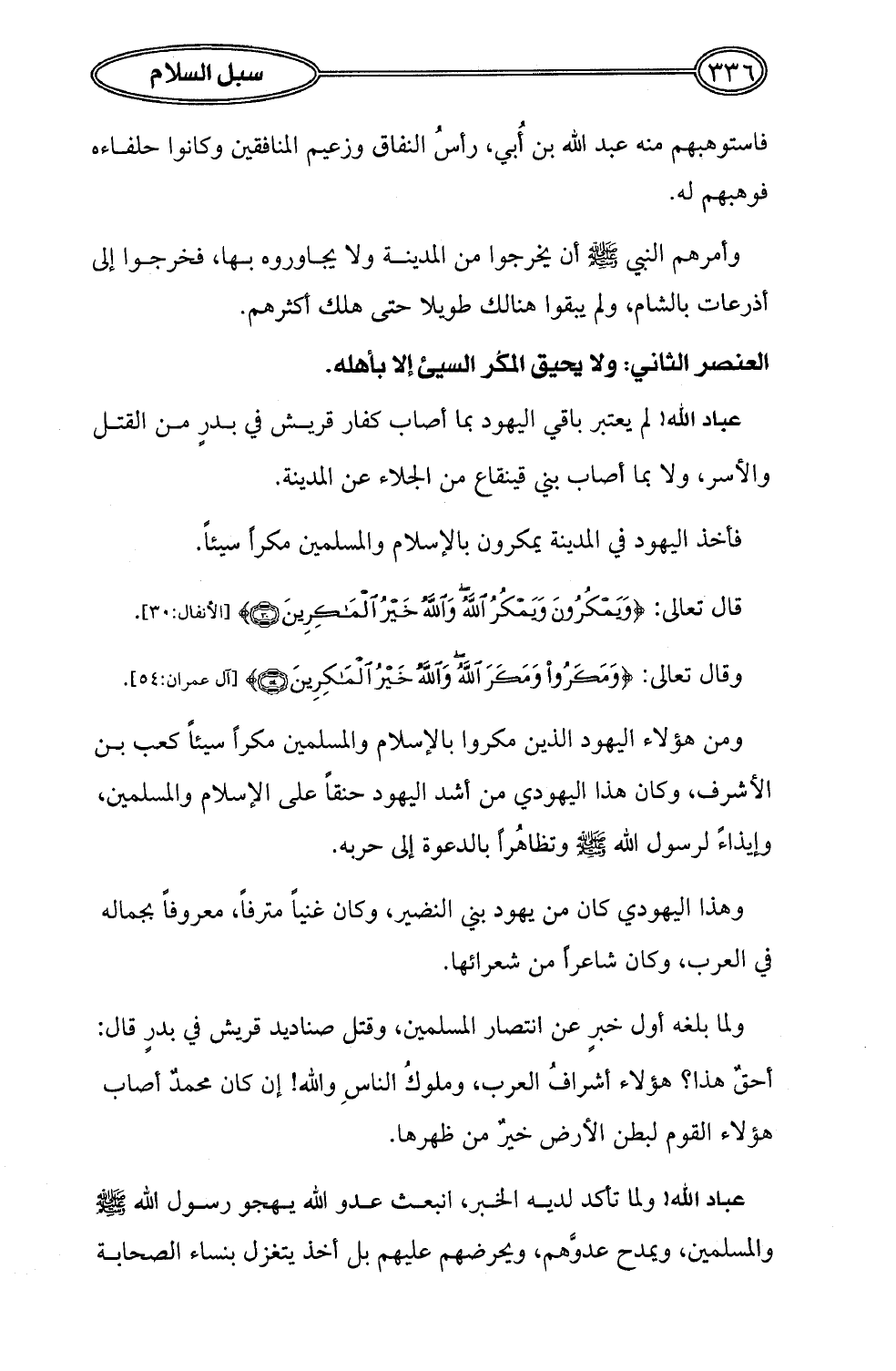 عباد الله! لم يعتبر باقي اليهود بما أصاب كفار قريش في بدرٍ من القتل والأسر، ولا بما أصاب بني قينقاع من الجلاء عن المدينة.
