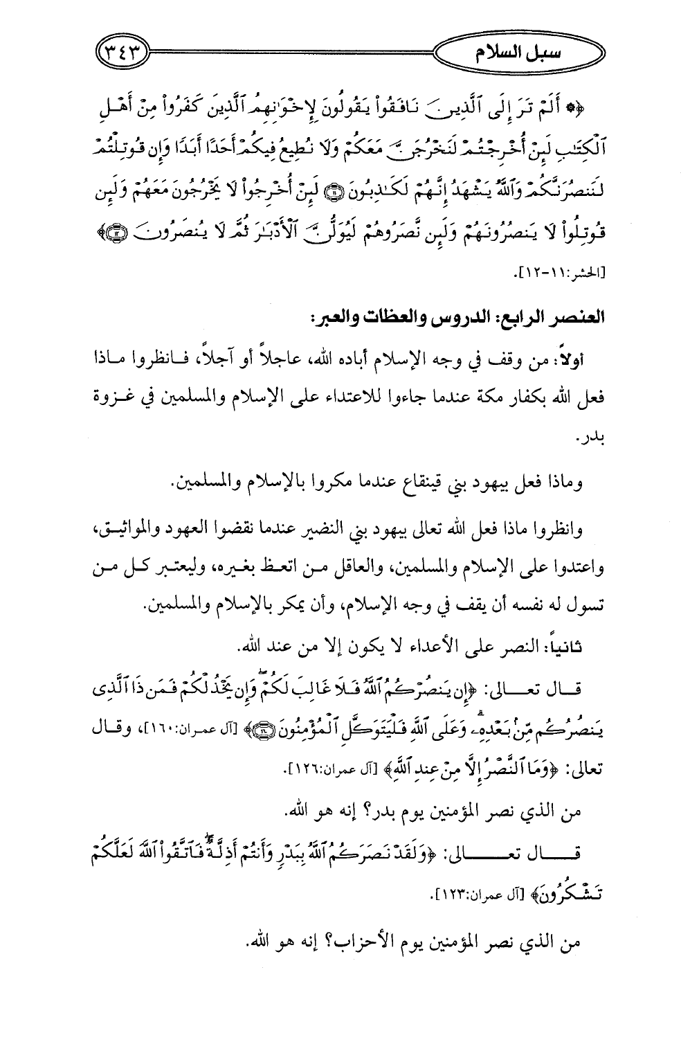 العنصر الرابع: الدروس والعظات والعبر: