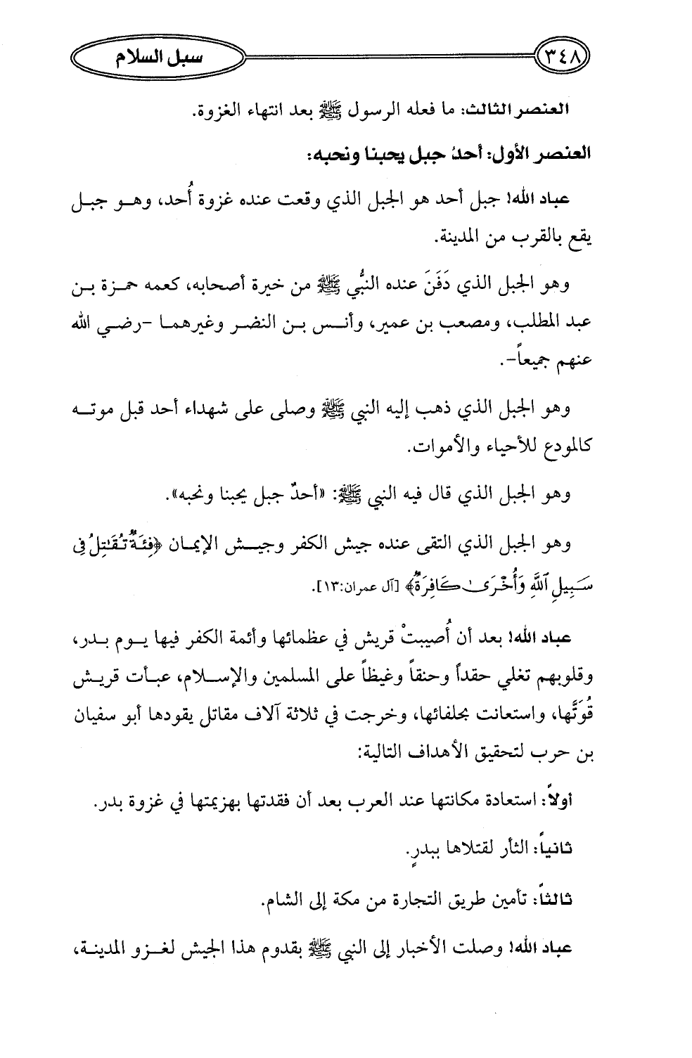 العنصر الأول: أحد جبل يحبنا ونحبه: