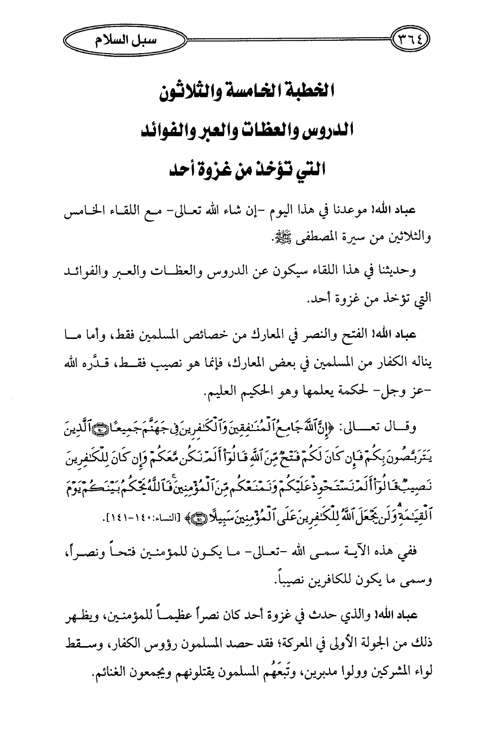 الخطبة الخامسة والثلاثون: الدروس والعظات والعبر والفوائد التي تؤخذ من غزوة أحد