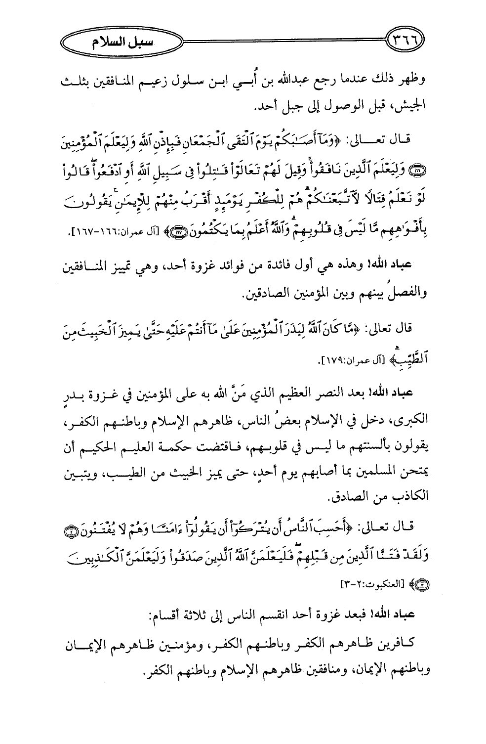 عباد الله! فبعد غزوة أحد انقسم الناس إلى ثلاثة أقسام: