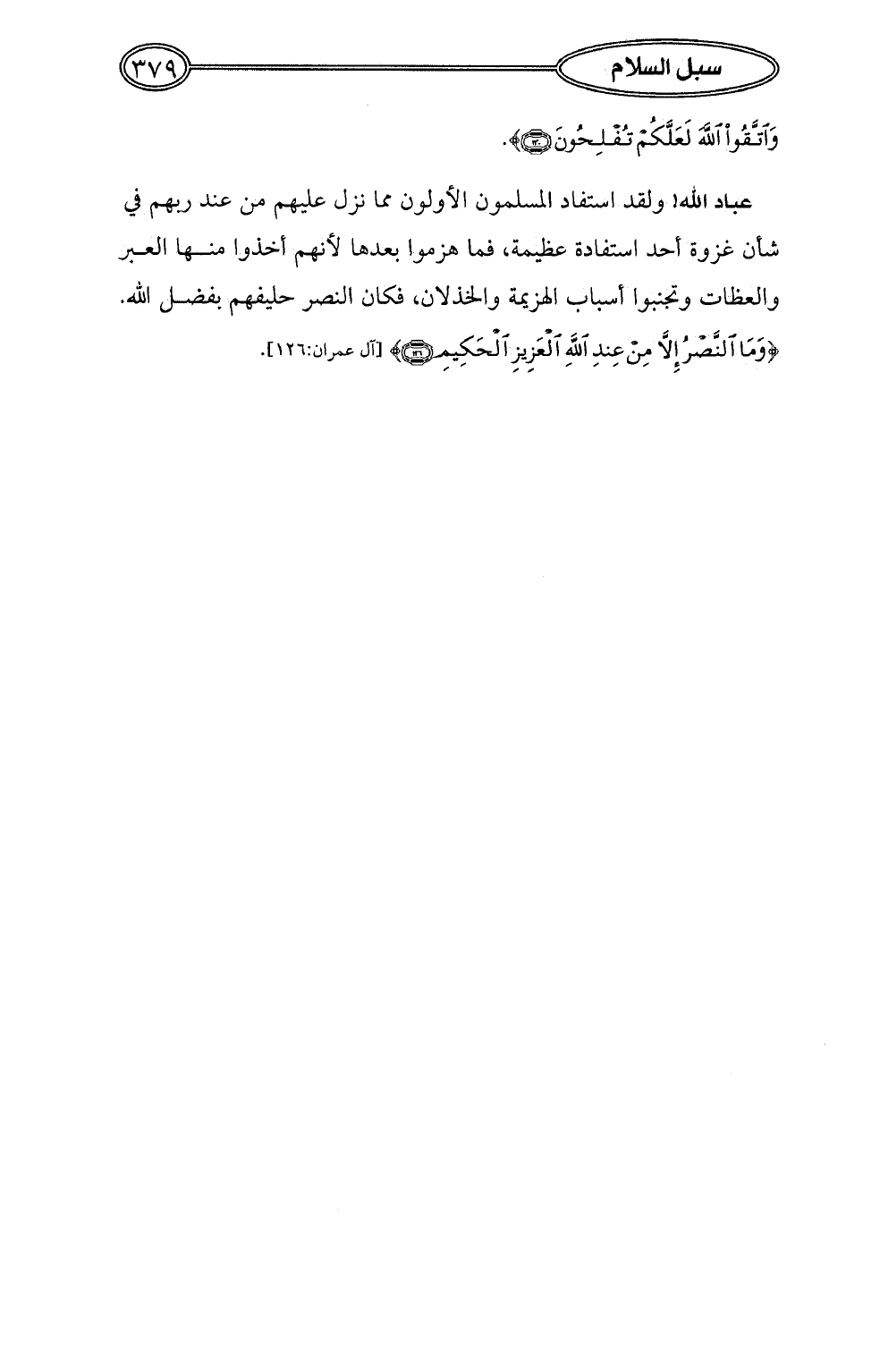 {وَمَا النَّصْرُ إِلَّا مِنْ عِنْدِ اللَّهِ الْعَزِيزِ الْحَكِيمِ (126)} [آل عمران: 126].