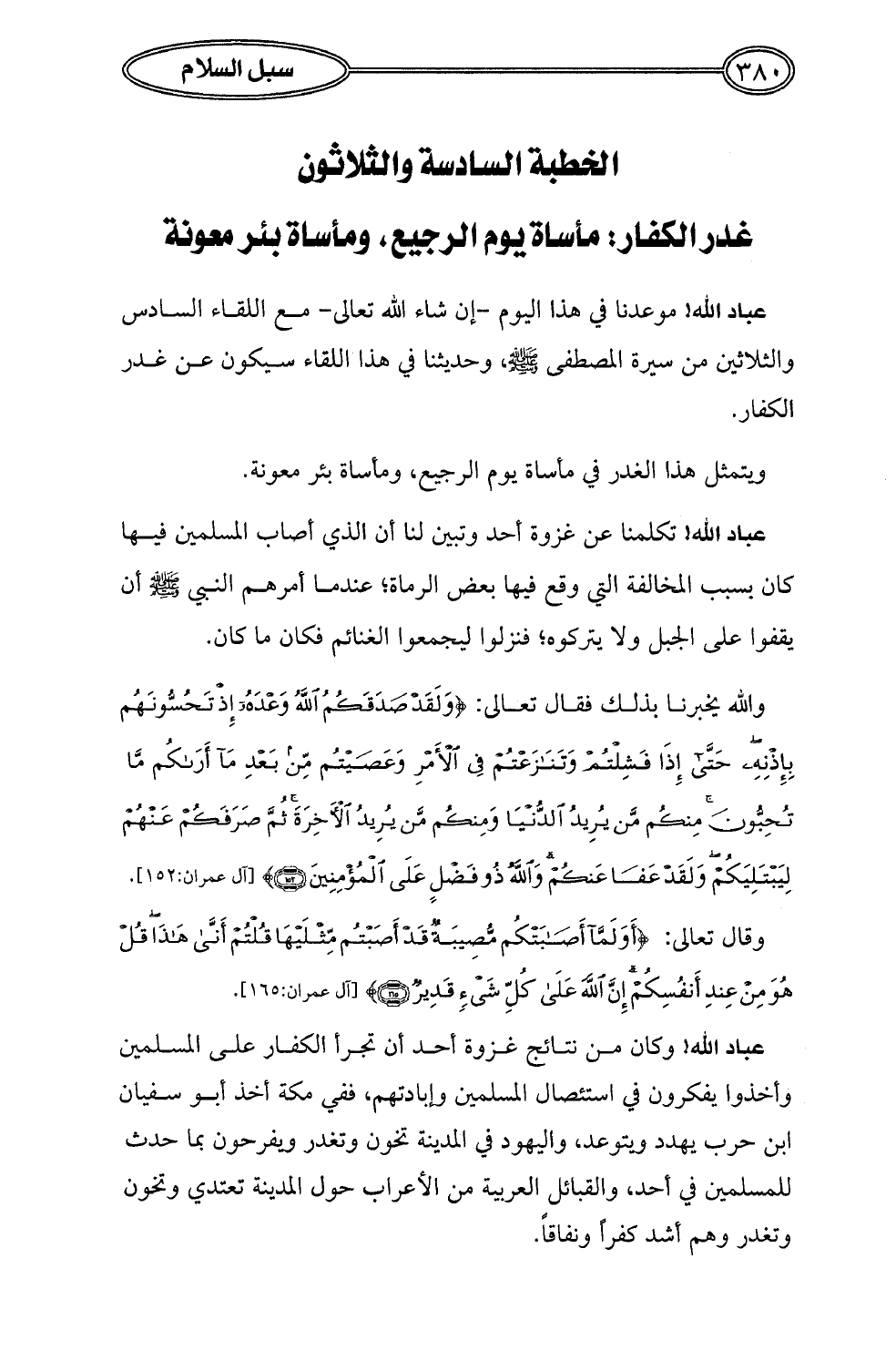 الخطبة السادسة والثلاثون: غدر الكفار: مأساة يوم الرجيع، ومأساة بئر معونة