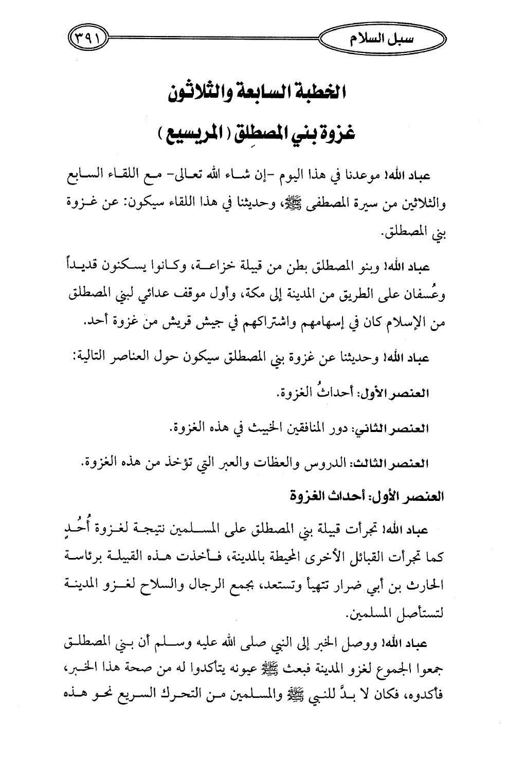 الخطبة السابعة والثلاثون: غزوة بني المصطلِق (المريسيع)