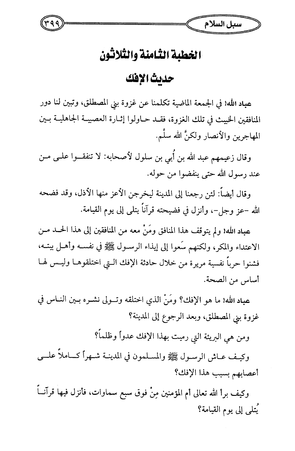 الخطبة الثامنة والثلاثون: حديث الإفك