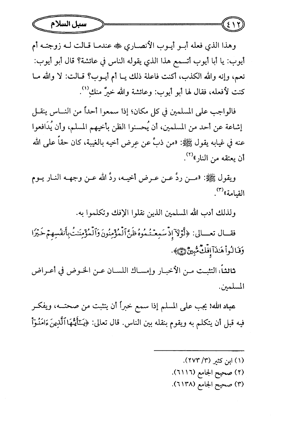 ثالثاً: التثبت من الأخبار وإمساك اللسان عن الخوض في أعراض المسلمين.