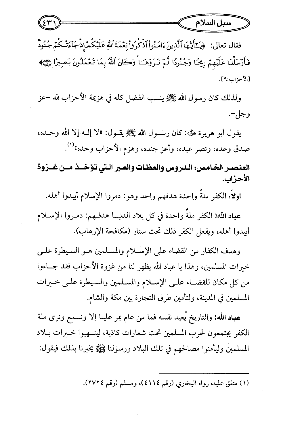 العنصر الخامس: الدروس والعظات والعبر التي تؤخذ من غزوة الأحزاب.