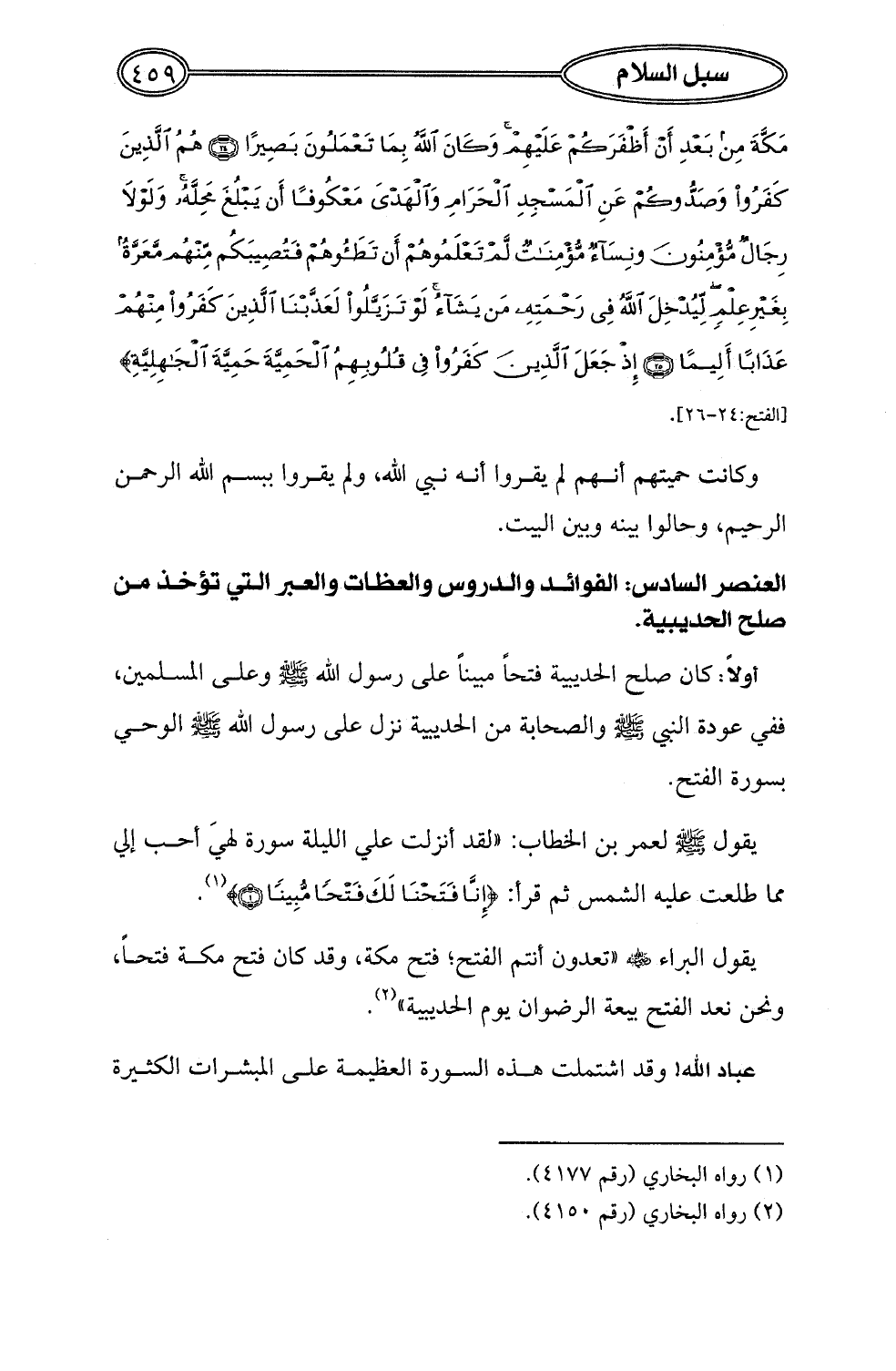 العنصر السادس: الفوائد والدروس والعظات والعبر التي تؤخذ من صلح الحديبية.