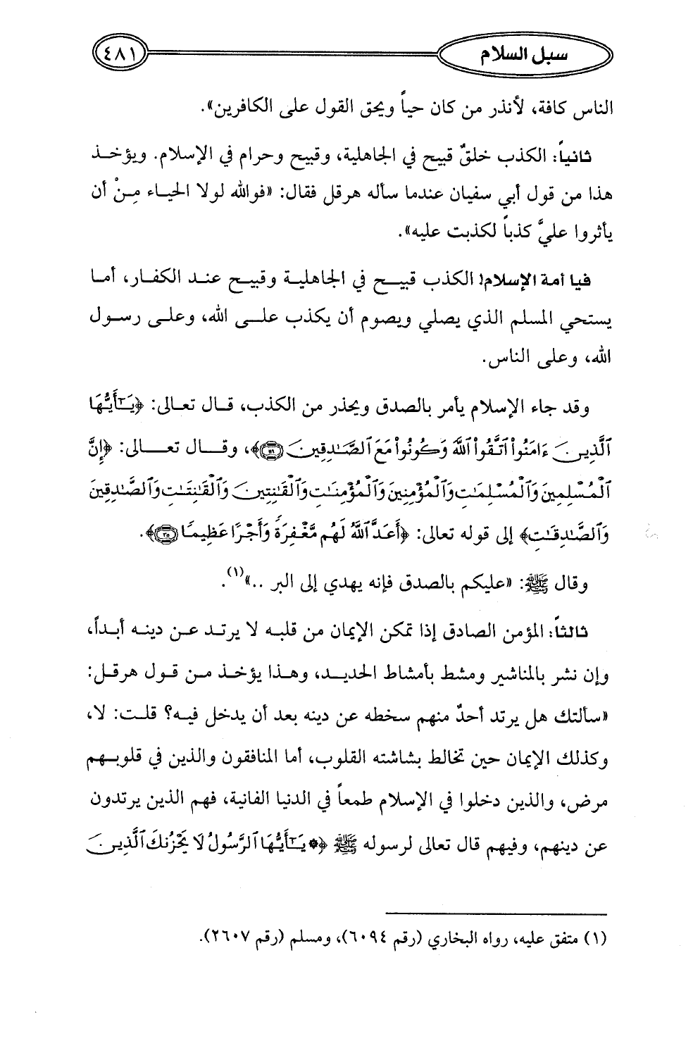 كتاب سبل السلام من صحيح سيرة خير الأنام عليه الصلاة والسلام (اسم الجزء: 1)