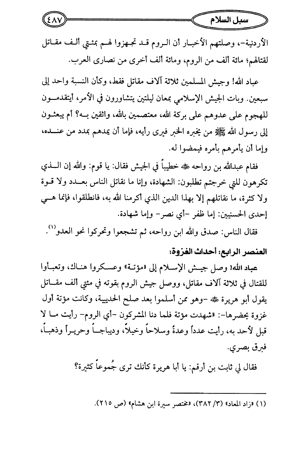 (¬1) "زاد المعاد" (3/ 382)، "مختصر سيرة ابن هشام" (ص 215).