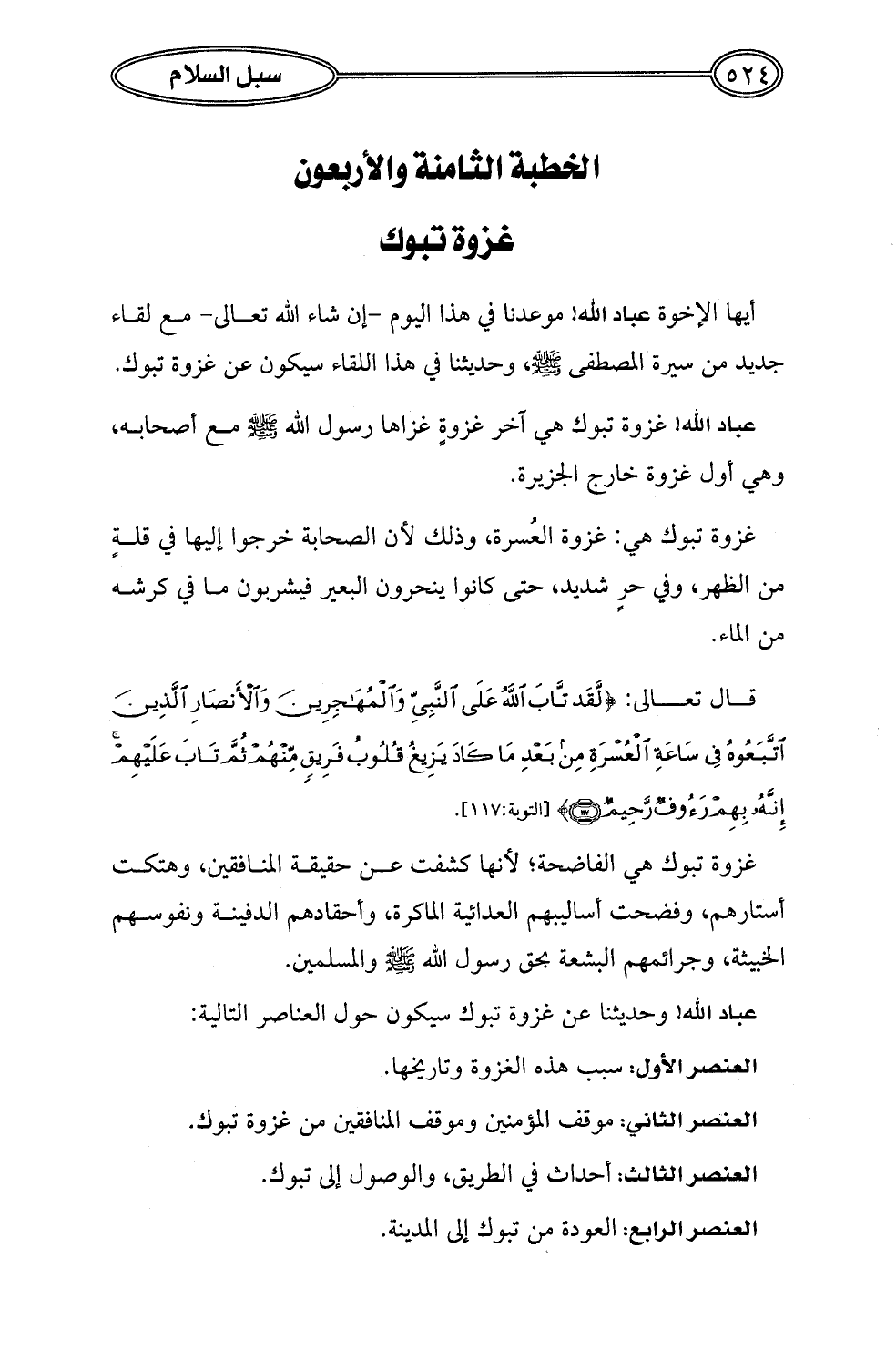 عباد الله! وحديثنا عن غزوة تبوك سيكون حول العناصر التالية: