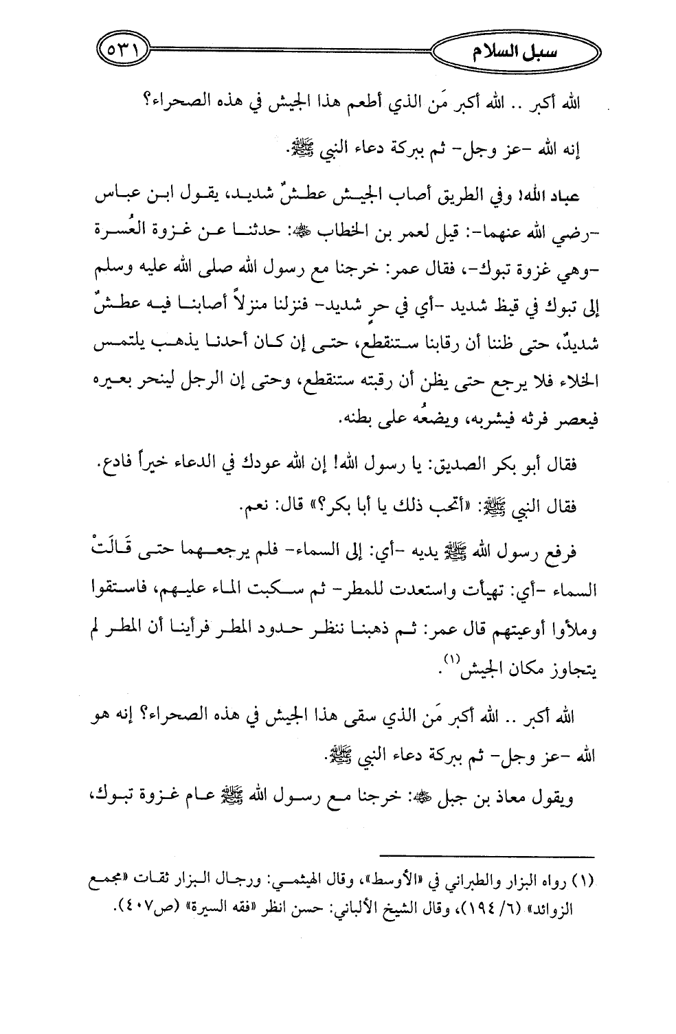 (¬1) رواه البزار والطبراني في "الأوسط"، وقال الهيثمي: ورجال البزار ثقات "مجمع الزوائد" (6/ 194)، وقال الشيخ الألباني: حسن انظر "فقه السيرة" (ص 407).