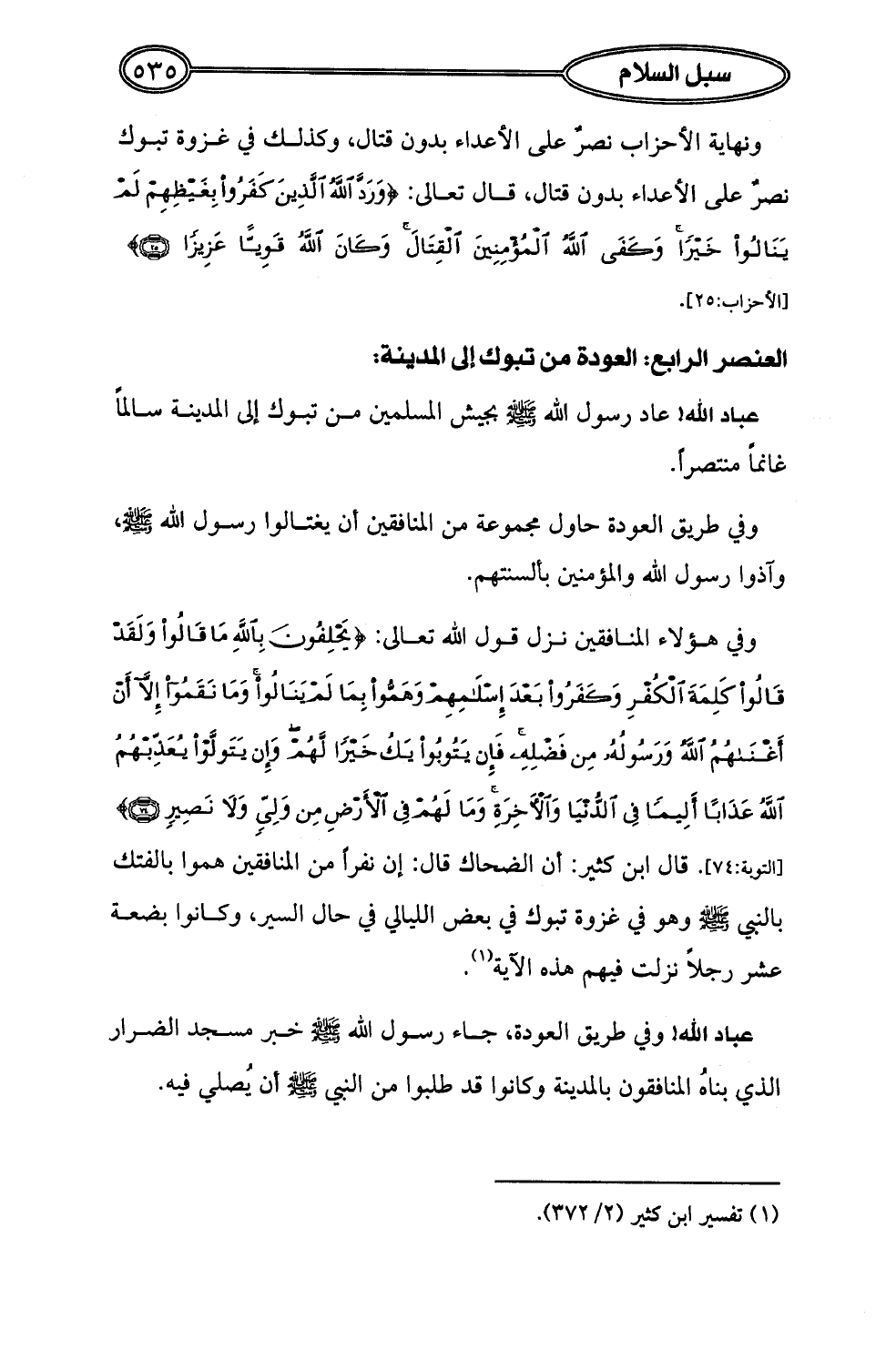 العنصر الرابع: العودة من تبوك إلى المدينة: