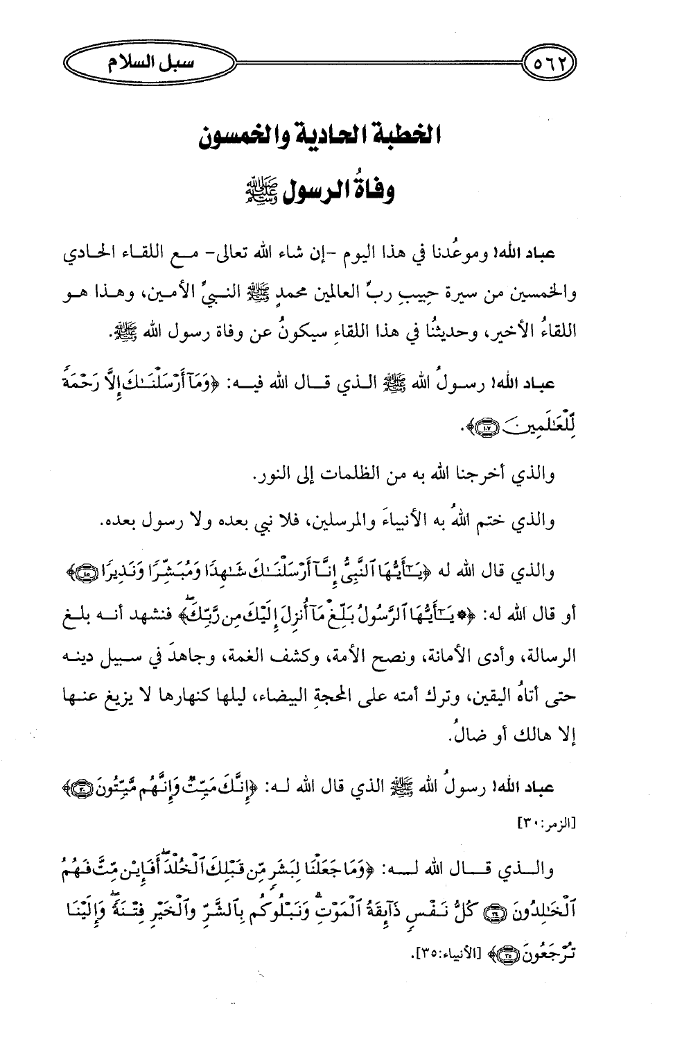 الخطبة الحادية والخمسون: وفاةُ الرسول - صلى الله عليه وسلم -