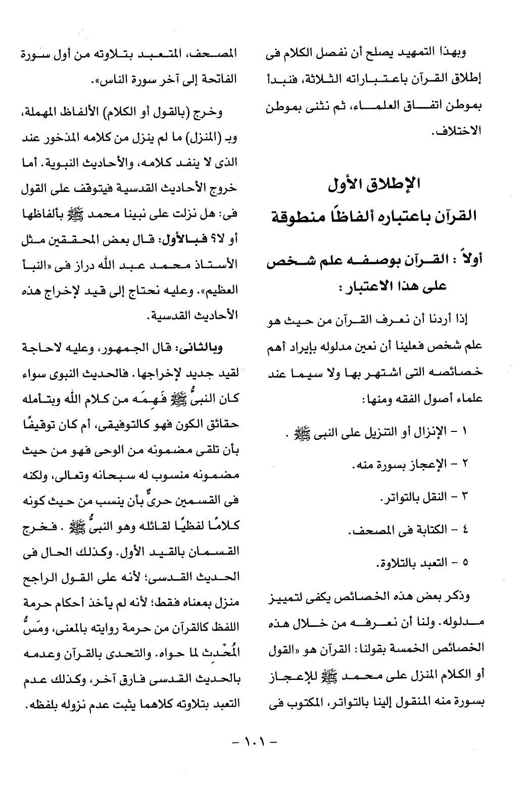 الإطلاق الأول القرآن باعتباره ألفاظا منطوقة