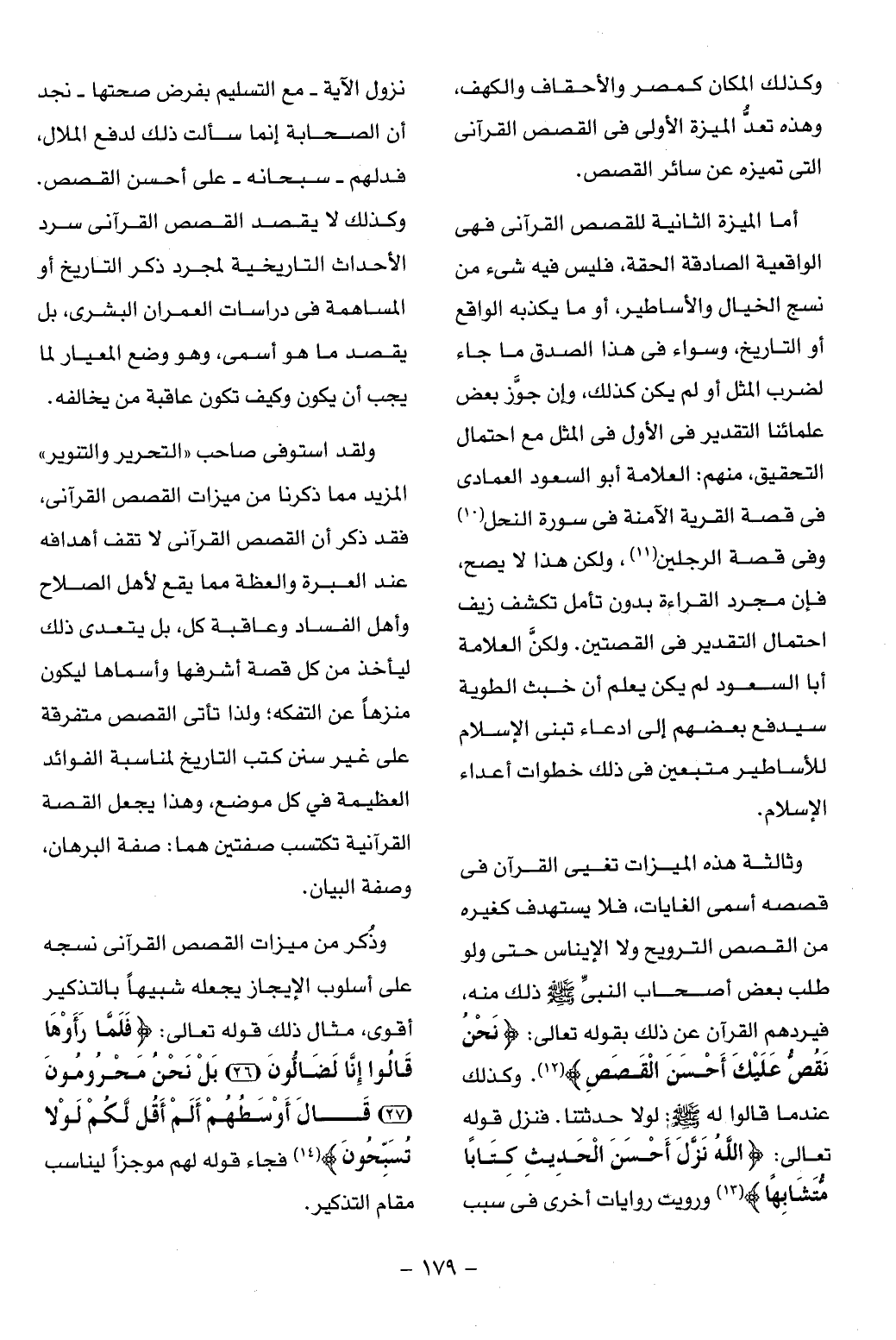 وكذلك المكان كمصر والأحقاف والكهف، وهذه تعدّ الميزة الأولى فى القصص القرآنى التى تميزه عن سائر القصص.