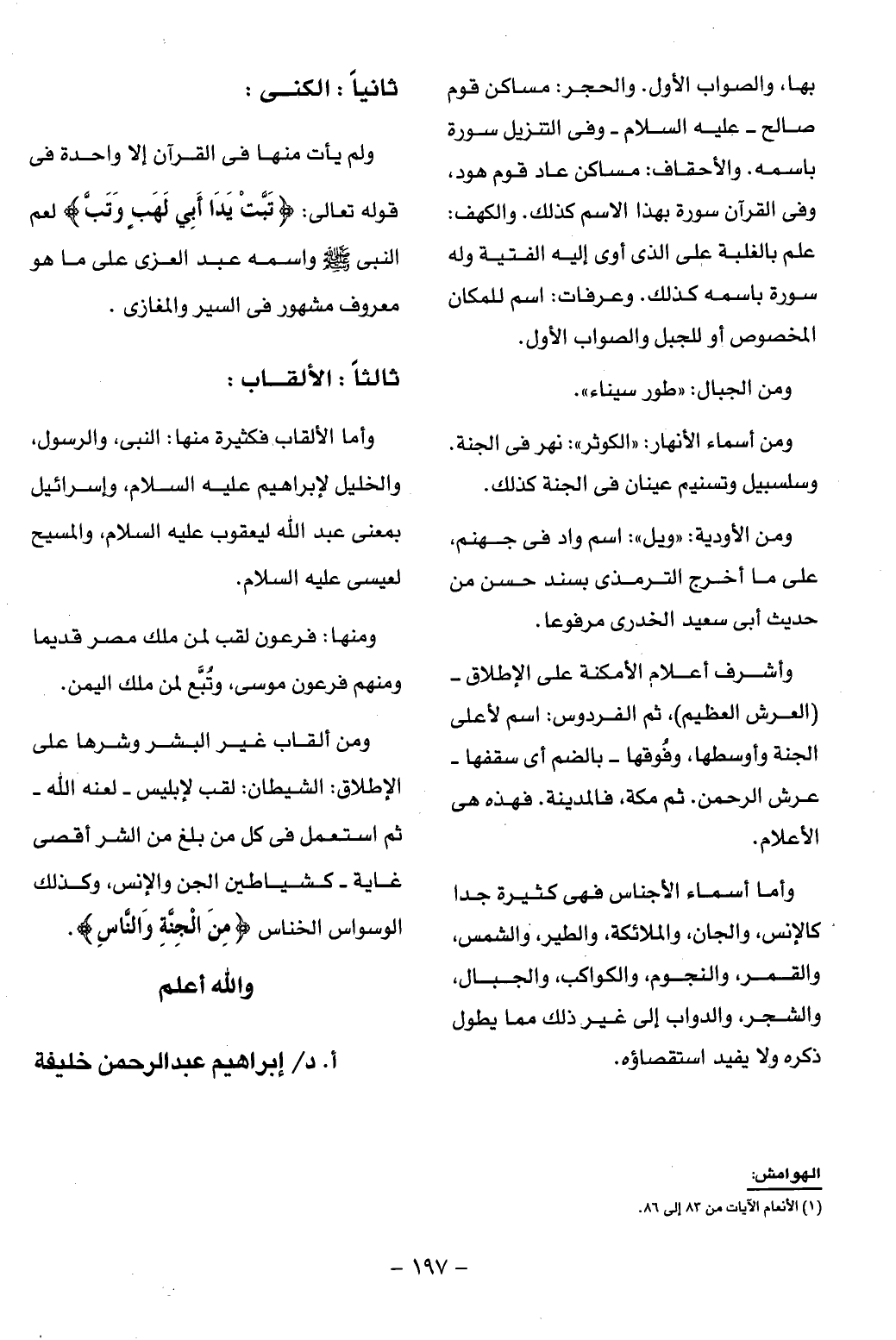 علم بالغلبة على الذى أوى إليه الفتية وله سورة باسمه كذلك. وعرفات: اسم للمكان المخصوص أو للجبل والصواب الأول.