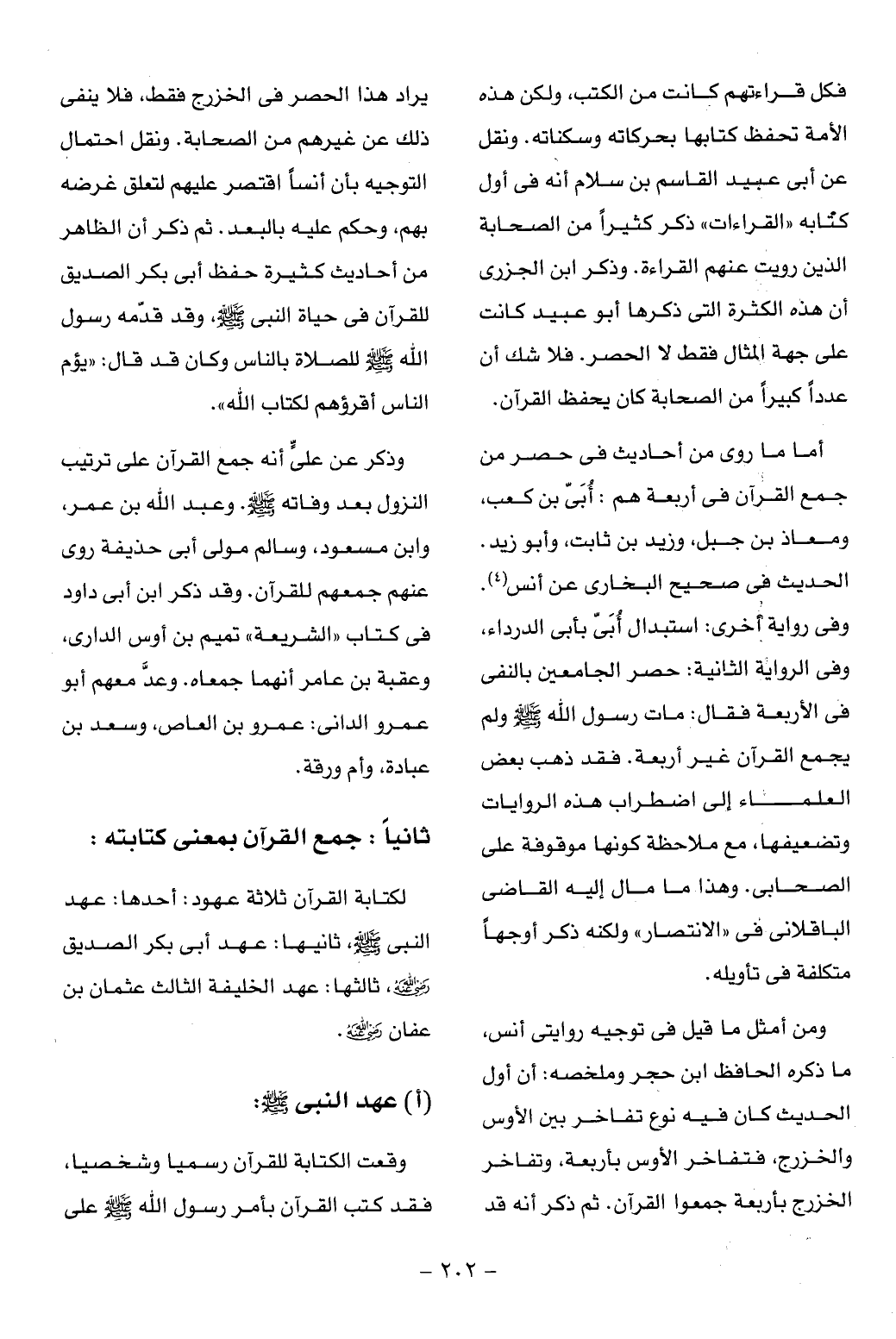 أما ما روى من أحاديث فى حصر من جمع القرآن فى أربعة هم: أبىّ بن كعب، ومعاذ بن جبل، وزيد بن ثابت، وأبو زيد.