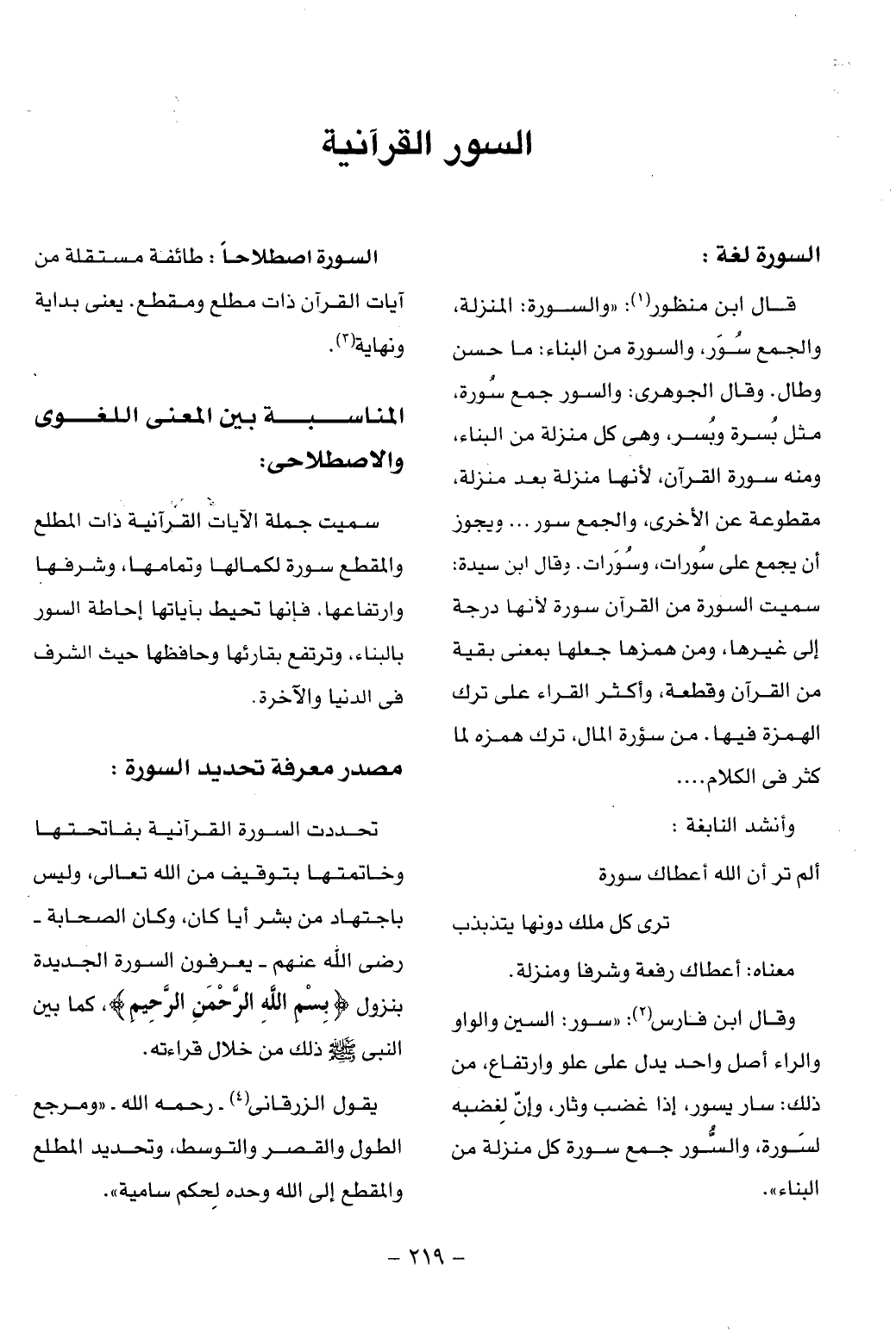 السورة اصطلاحا: طائفة مستقلة من آيات القرآن ذات مطلع ومقطع. يعنى بداية ونهاية (¬3).
