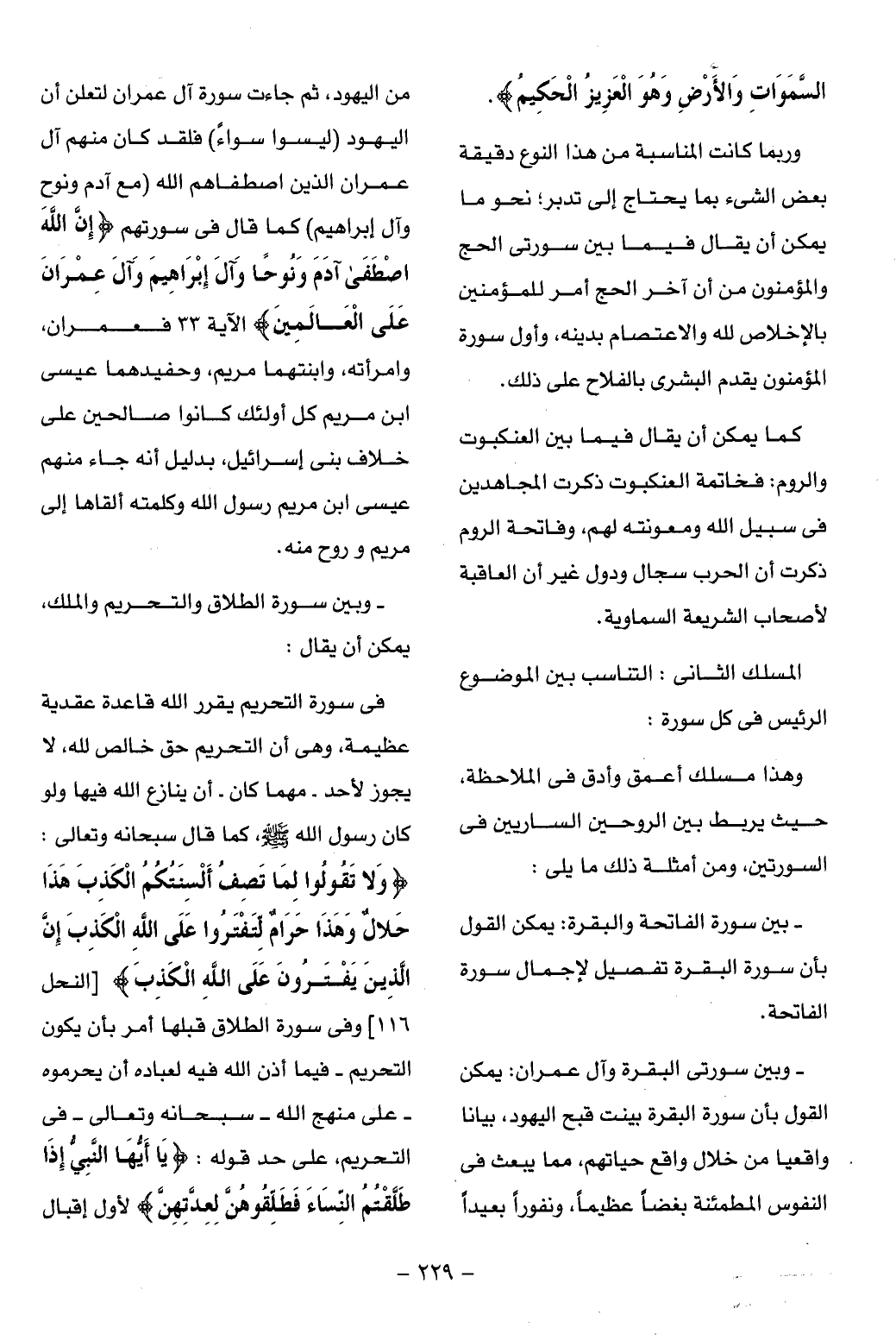 وربما كانت المناسبة من هذا النوع دقيقة بعض الشيء بما يحتاج إلى تدبر؛ نحو ما يمكن أن يقال فيما بين سورتى الحج والمؤمنون من أن آخر الحج أمر للمؤمنين بالإخلاص لله والاعتصام بدينه، وأول سورة المؤمنون يقدم البشرى بالفلاح على ذلك.