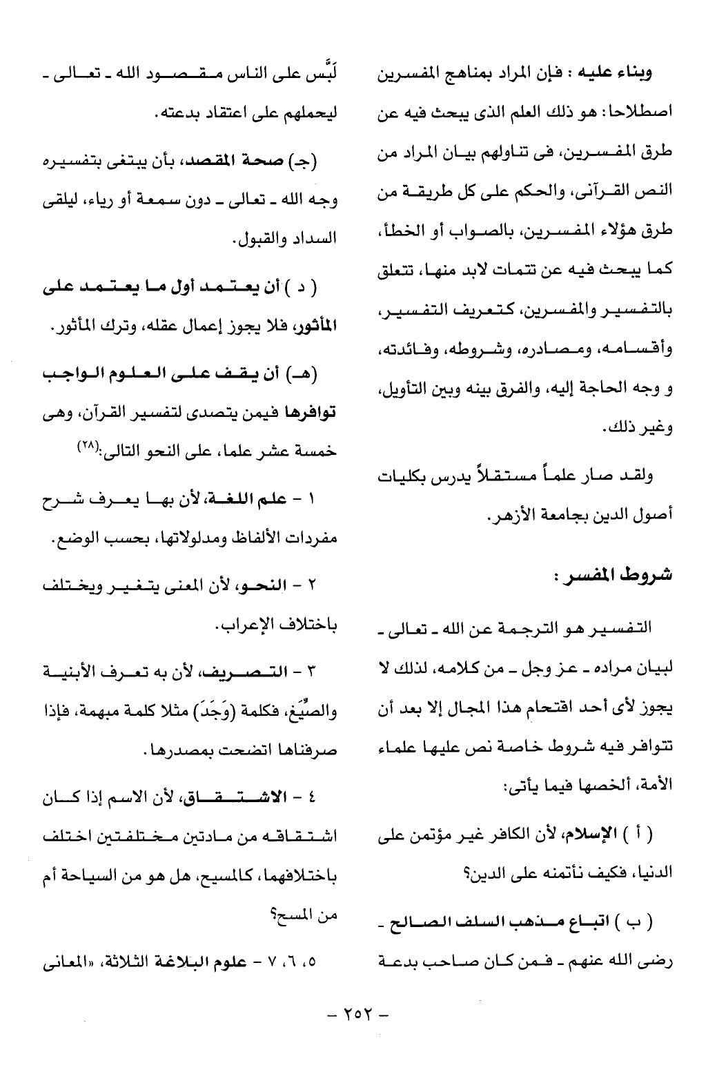 (هـ) أن يقف على العلوم الواجب توافرها فيمن يتصدى لتفسير القرآن، وهى خمسة عشر علما، على النحو التالى: (¬28)
