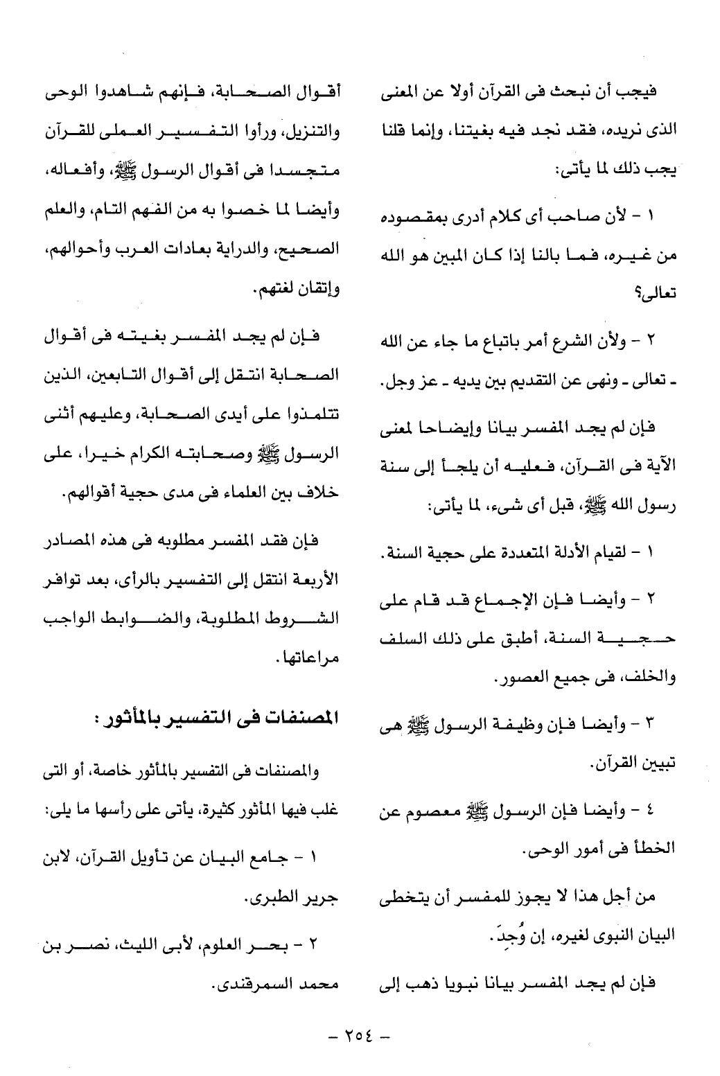 فإن فقد المفسر مطلوبه فى هذه المصادر الأربعة انتقل إلى التفسير بالرأى، بعد توافر الشروط المطلوبة، والضوابط الواجب مراعاتها.