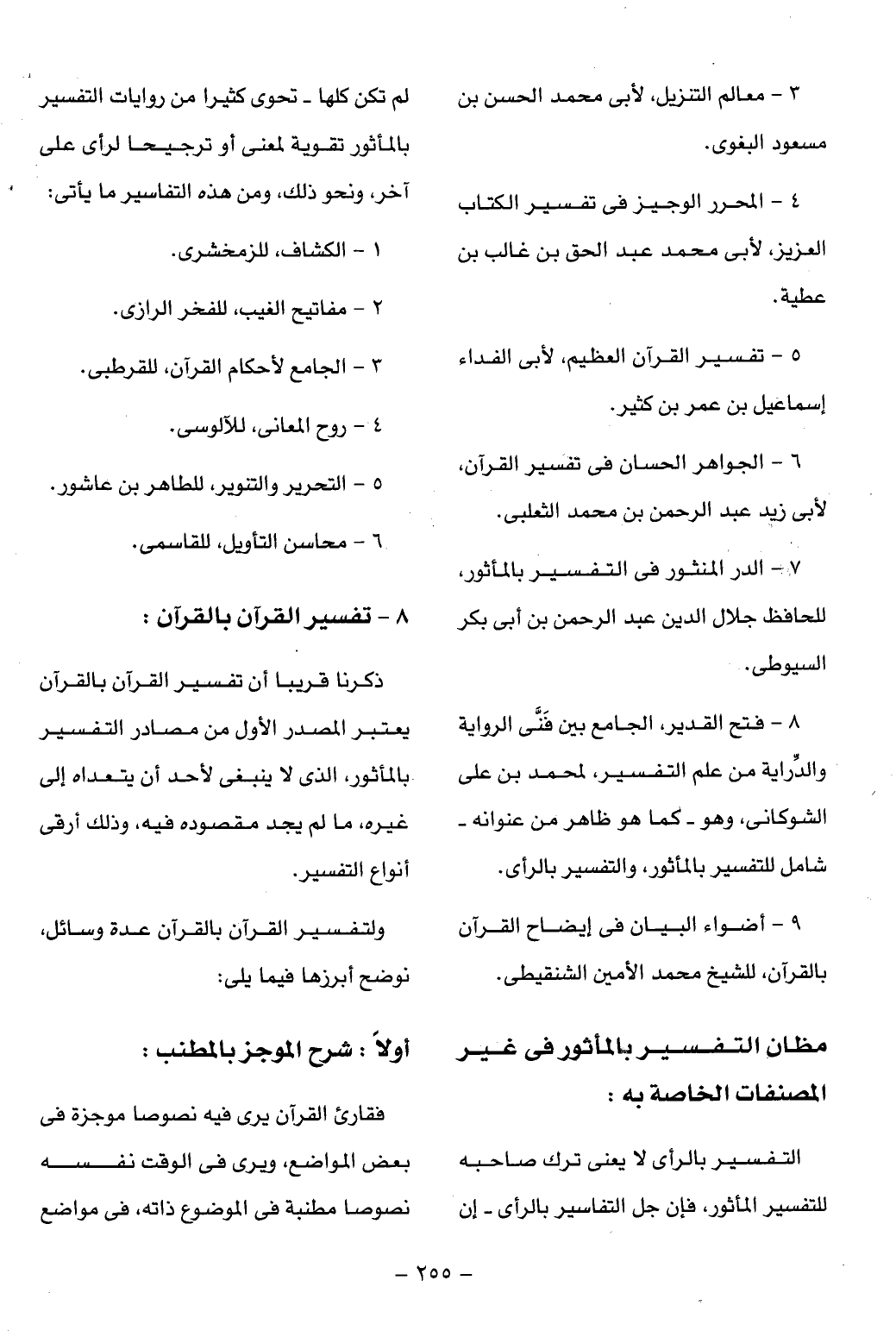 ذكرنا قريبا أن تفسير القرآن بالقرآن يعتبر المصدر الأول من مصادر التفسير بالمأثور، الذى لا ينبغى لأحد أن يتعداه إلى غيره، ما لم يجد مقصوده فيه، وذلك أرقى أنواع التفسير.