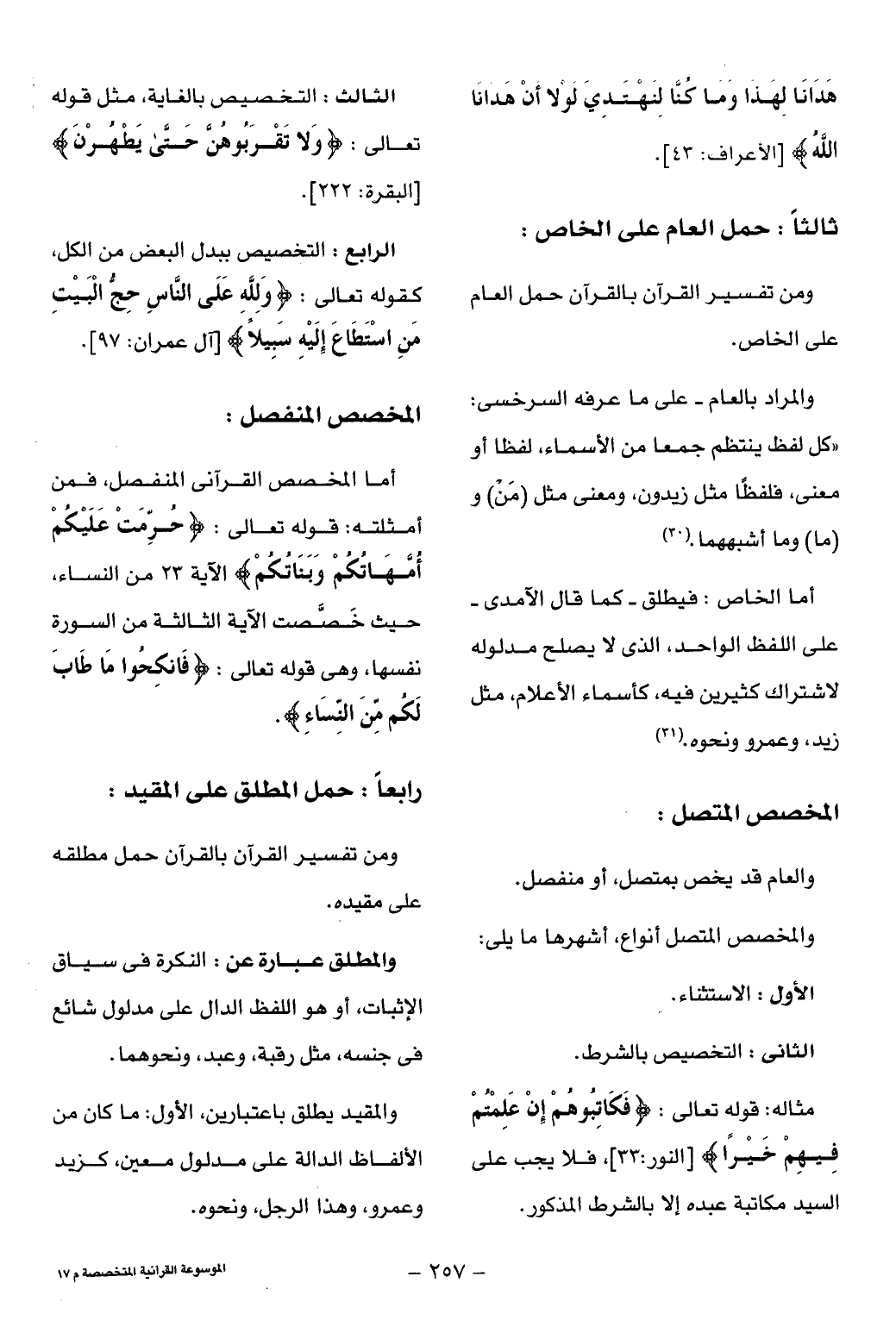 ومن تفسير القرآن بالقرآن حمل العام على الخاص.