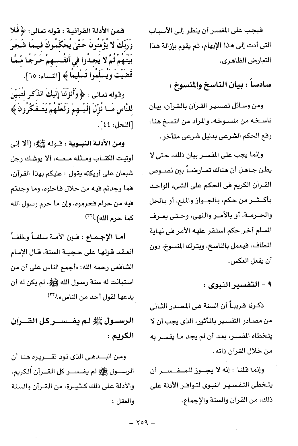 ومن البدهى الذى نود تقريره هنا أن الرسول صلّى الله عليه وسلم لم يفسر كل القرآن الكريم، والأدلة على ذلك كثيرة، من القرآن والسنة والعقل: