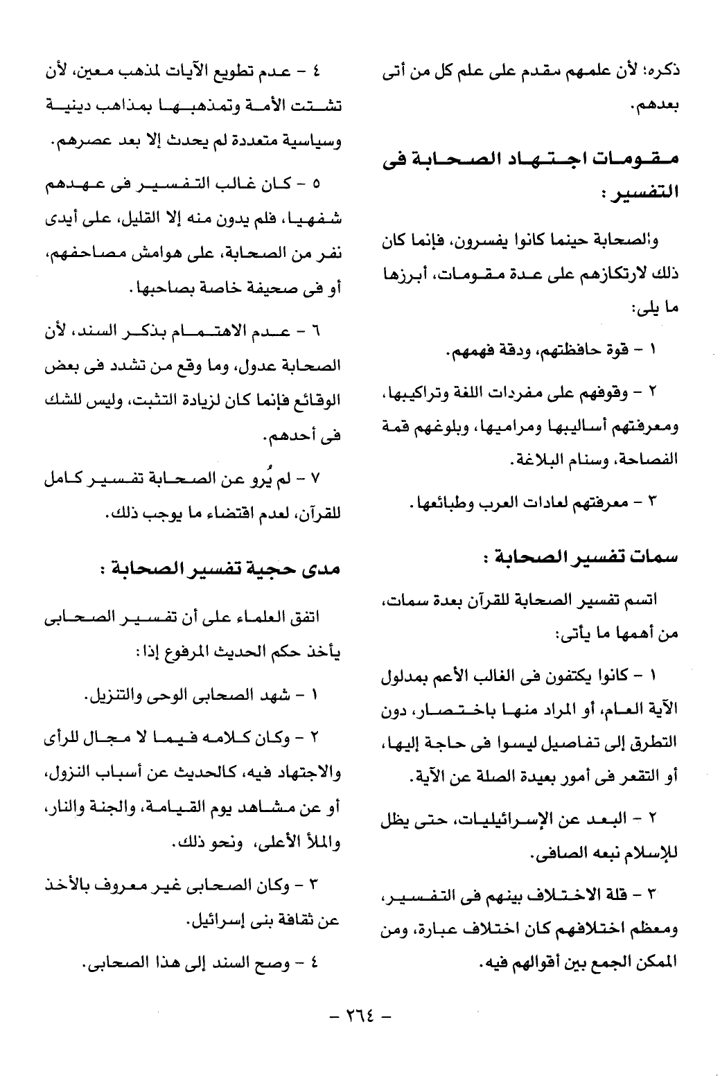 5 - كان غالب التفسير فى عهدهم شفهيا، فلم يدون منه إلا القليل، على أيدى نفر من الصحابة، على هوامش مصاحفهم، أو فى صحيفة خاصة بصاحبها.