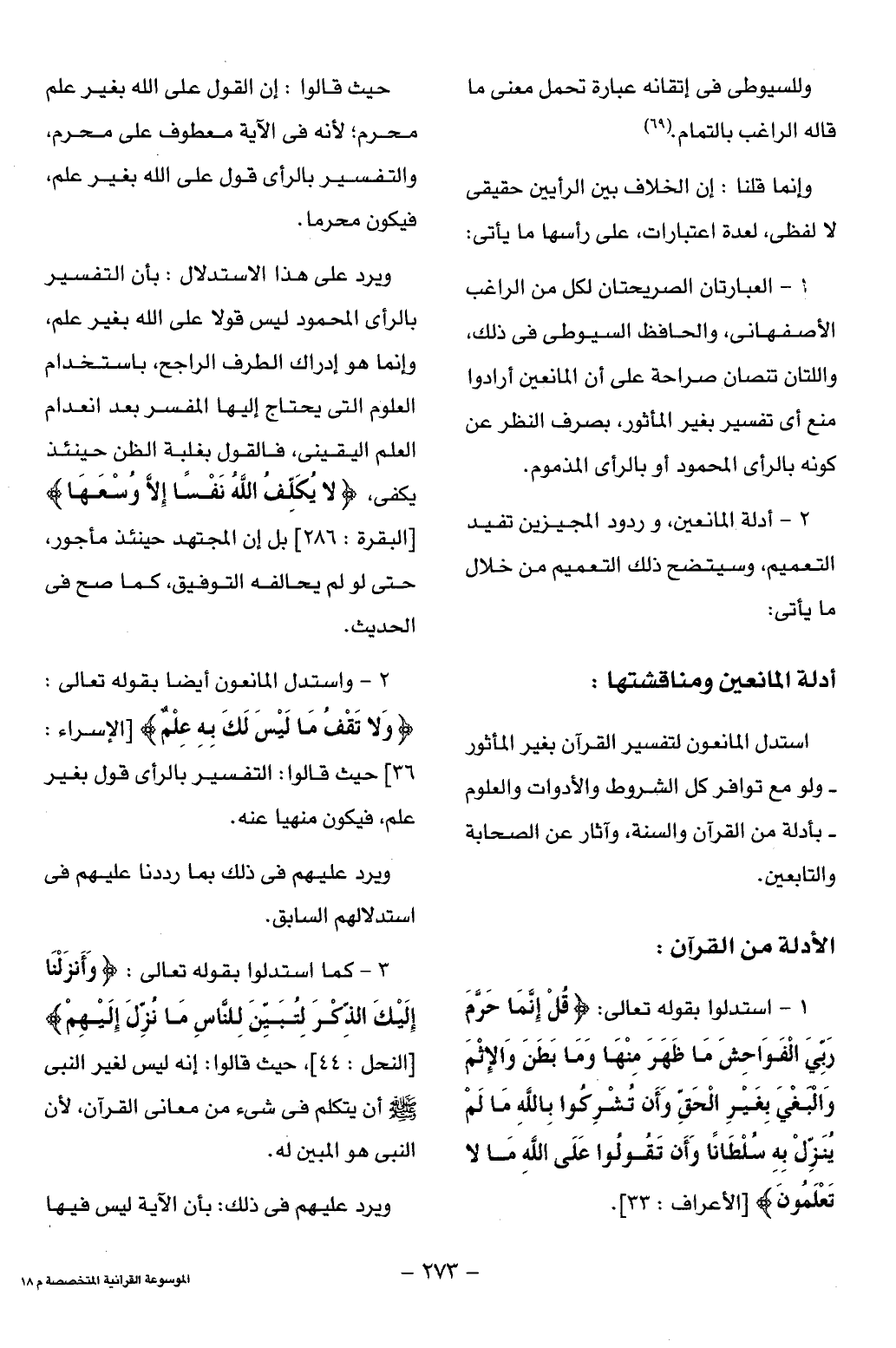 1 - العبارتان الصريحتان لكل من الراغب الأصفهانى، والحافظ السيوطى فى ذلك، واللتان تنصان صراحة على أن المانعين أرادوا منع أى تفسير بغير المأثور، بصرف النظر عن كونه بالرأى المحمود أو بالرأى المذموم.