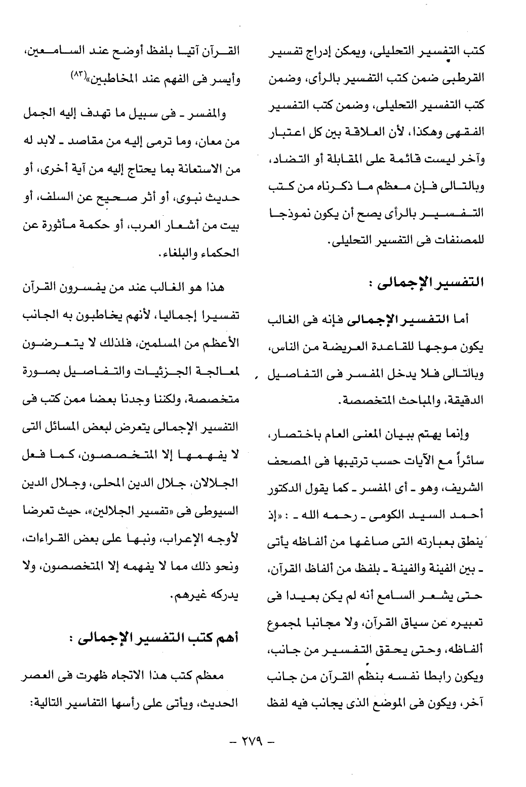 أما التفسير الإجمالى فإنه فى الغالب يكون موجها للقاعدة العريضة من الناس، وبالتالى فلا يدخل المفسر فى التفاصيل الدقيقة، والمباحث المتخصصة.