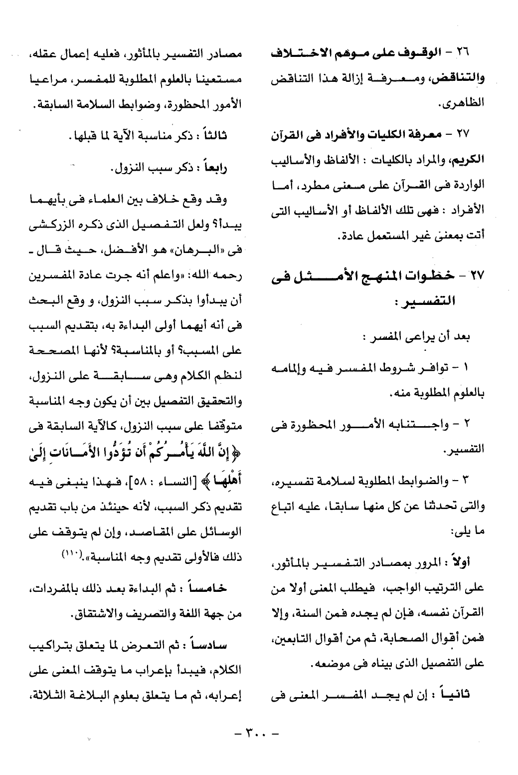 27 - معرفة الكليات والأفراد فى القرآن الكريم، والمراد بالكليات: الألفاظ والأساليب الواردة فى القرآن على معنى مطرد، أما الأفراد: فهى تلك الألفاظ أو الأساليب التى أتت بمعنى غير المستعمل عادة.