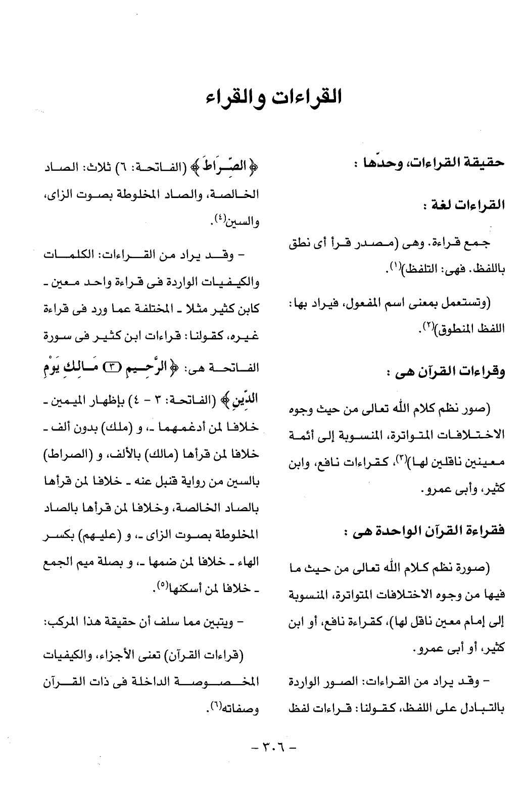 (قراءات القرآن) تعنى الأجزاء، والكيفيات المخصوصة الداخلة فى ذات القرآن وصفاته (¬6).