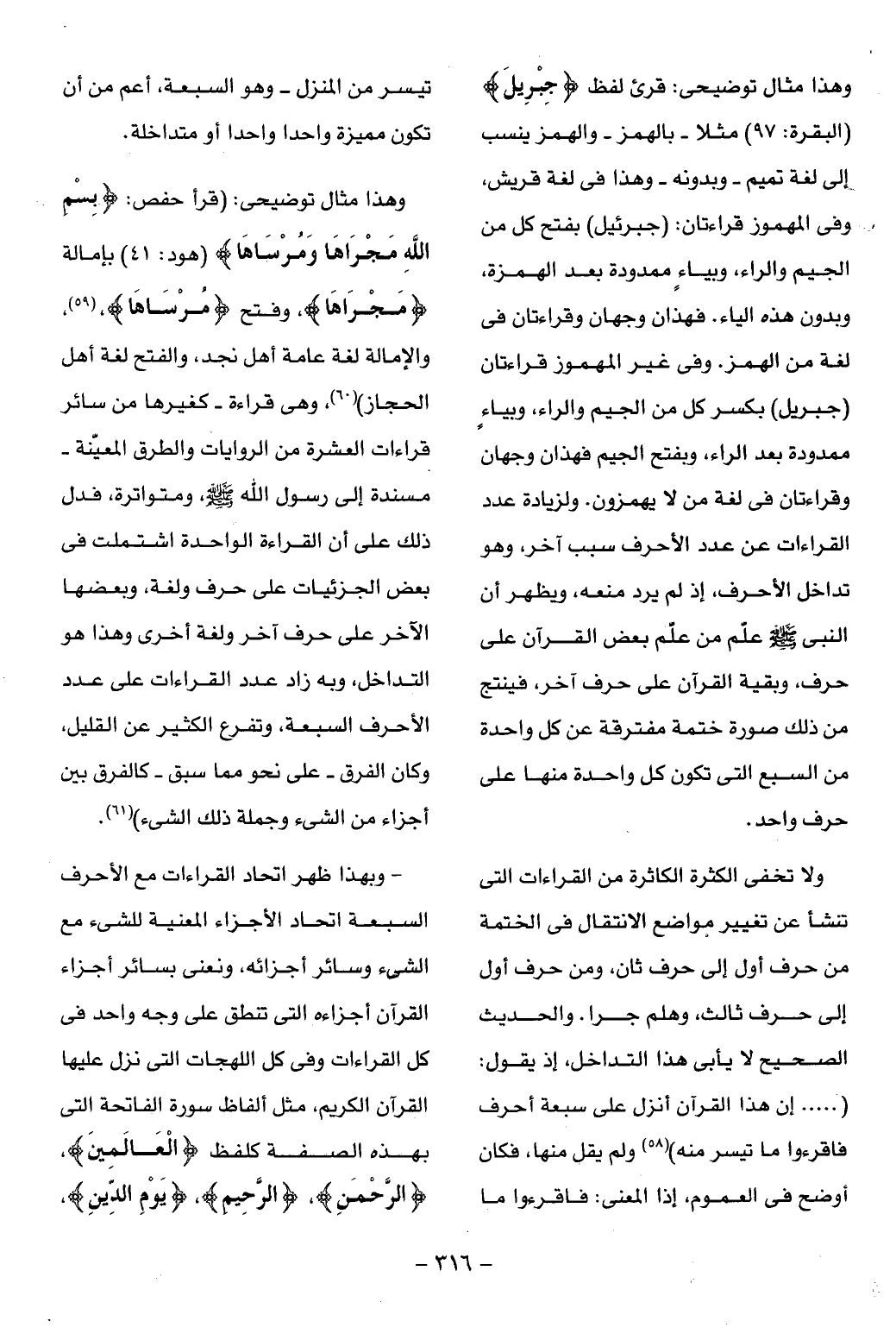 (¬58) انظر فتح البارى 19/ 30 - 31 كتاب فضائل القرآن باب (أنزل القرآن على سبعة أحرف) طبعة مكتبة الكليات الأزهرية. 1978 م مراجعة وتعليق طه عبد الرءوف وزميليه.