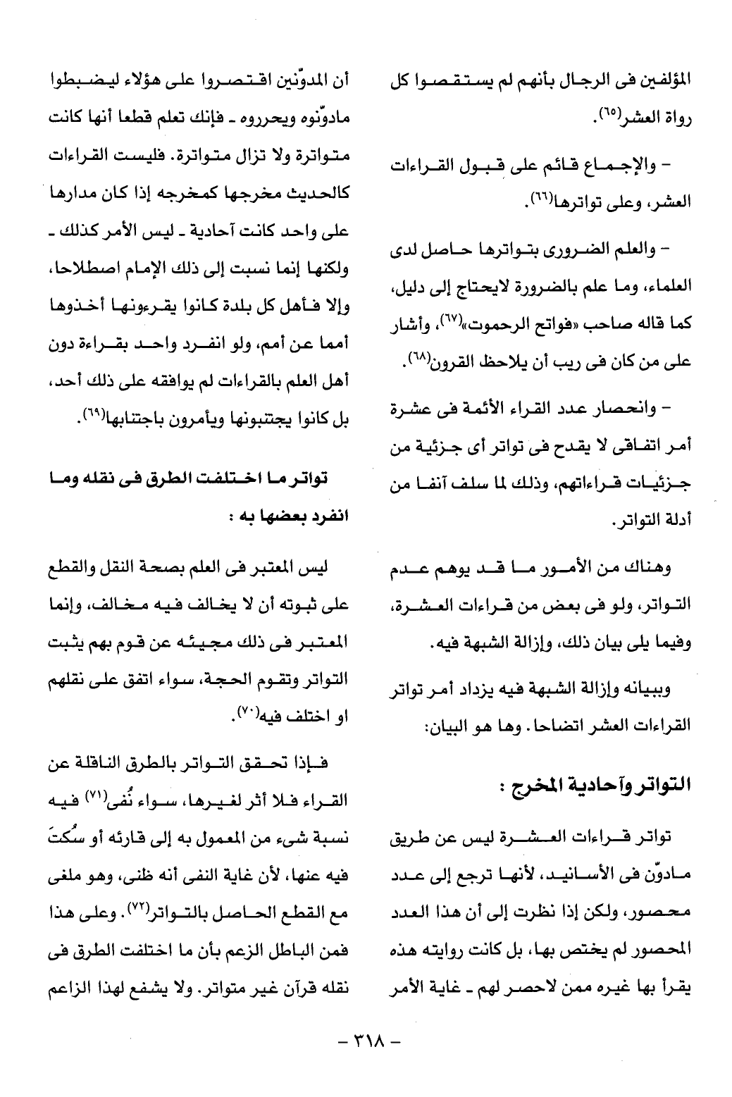 - والعلم الضرورى بتواترها حاصل لدى العلماء، وما علم بالضرورة لا يحتاج إلى دليل، كما قاله صاحب «فواتح الرحموت» (¬67)، وأشار على من كان فى ريب أن يلاحظ القرون (¬68).