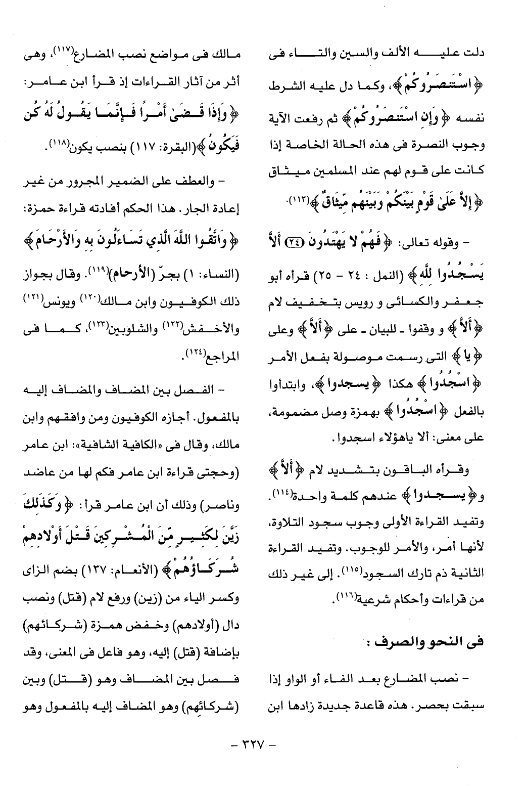 - نصب المضارع بعد الفاء أو الواو إذا سبقت بحصر. هذه قاعدة جديدة زادها ابن مالك فى مواضع نصب المضارع (¬117)، وهى أثر من آثار القراءات إذ قرأ ابن عامر: