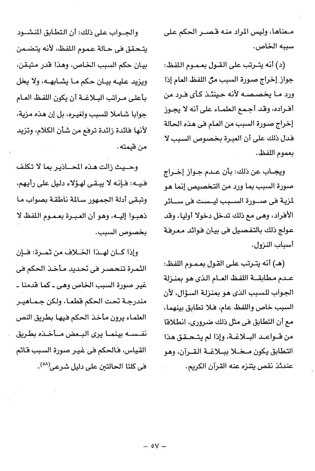 عدم مطابقة اللفظ العام الذى هو بمنزلة الجواب للسبب الذى هو بمنزلة السؤال، لأن السبب خاص واللفظ عام، فلا تطابق بينهما، مع أن التطابق فى مثل ذلك ضرورى، انطلاقا من قواعد البلاغة، وإذا لم يتحقق هذا التطابق يكون مخلا ببلاغة القرآن، وهو عندئذ نقص يتنزه عنه القرآن الكريم.