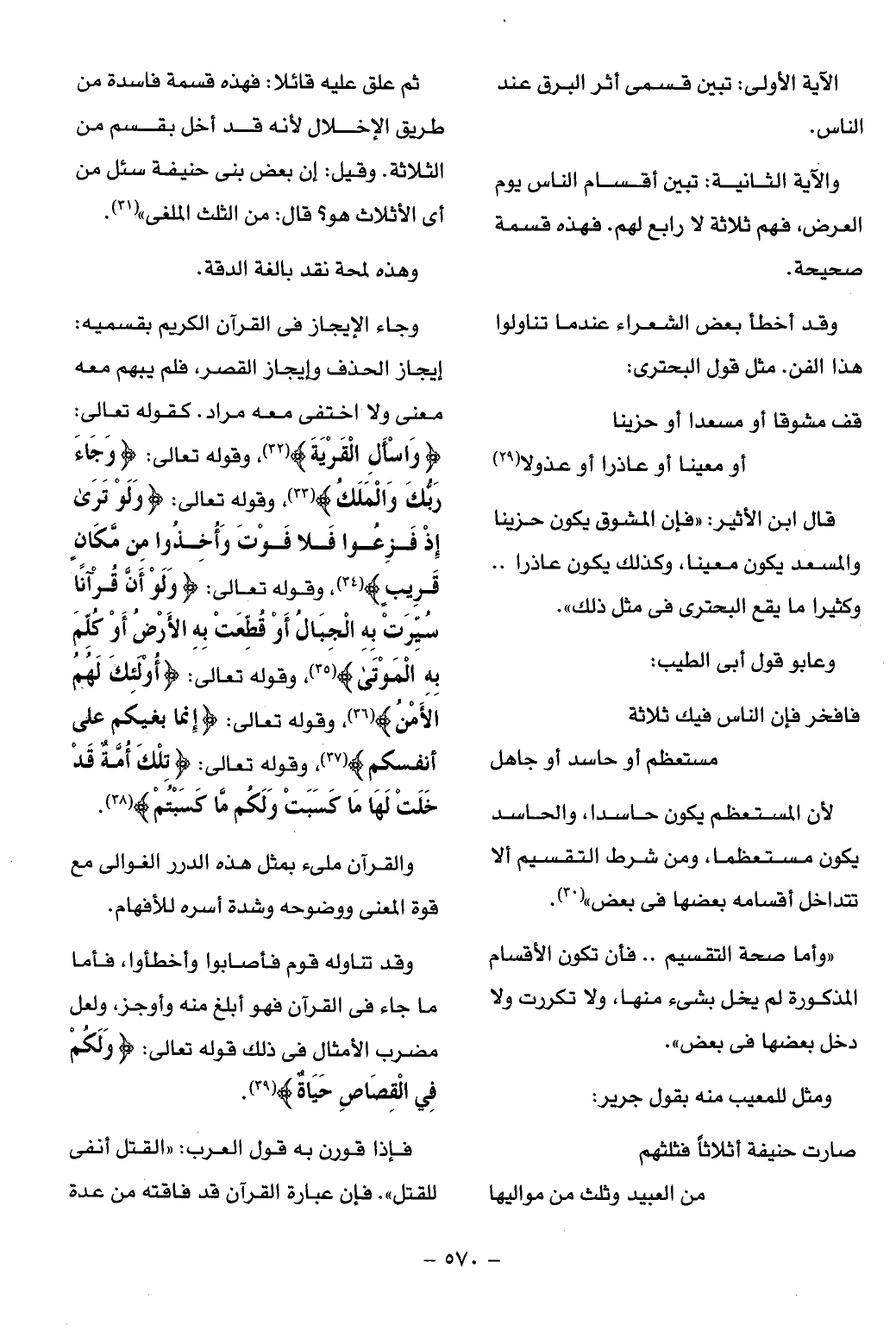 وقد تناوله قوم فأصابوا وأخطئوا، فأما ما جاء فى القرآن فهو أبلغ منه وأوجز، ولعل مضرب الأمثال فى ذلك قوله تعالى: وَلَكُمْ فِي الْقِصاصِ حَياةٌ (¬39).