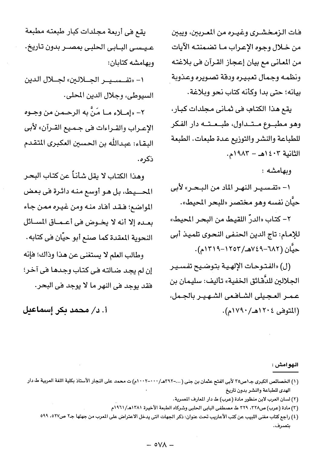 وهذا الكتاب لا يقل شأنا عن كتاب البحر المحيط، بل هو أوسع منه دائرة فى بعض المواضع؛ فقد أفاد منه ومن غيره ممن جاء بعده إلا أنه لا يخوض فى أعماق المسائل النحوية المعقدة كما صنع أبو حيّان فى كتابه.