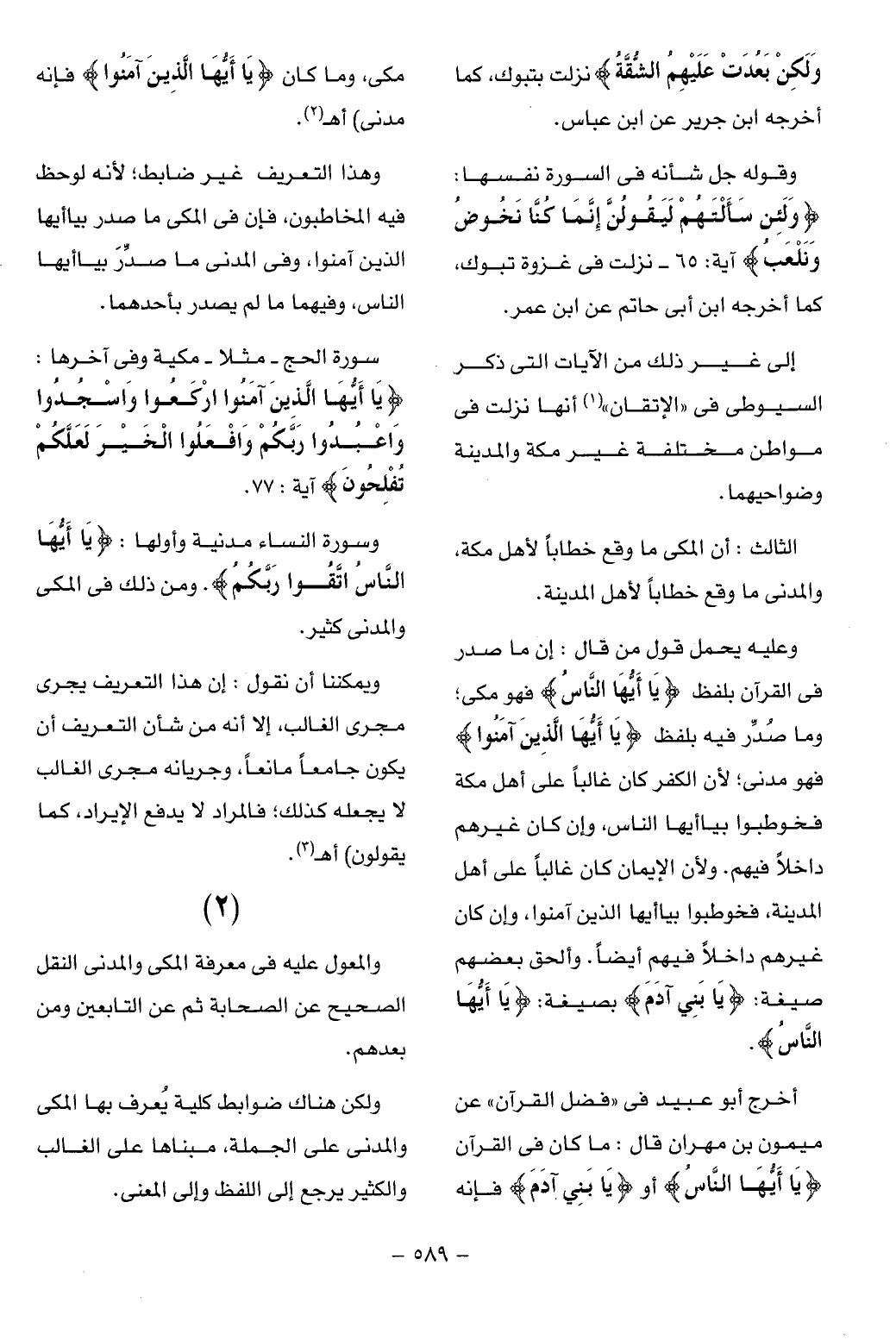 (2) [المعول عليه فى معرفة المكى والمدنى]