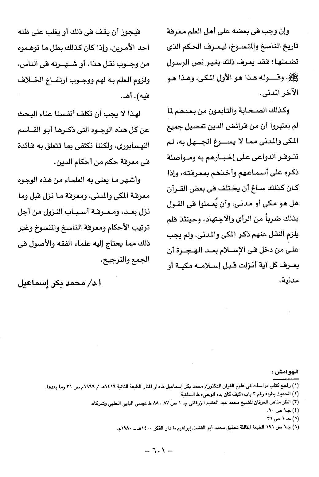 وإن وجب فى بعضه على أهل العلم معرفة تاريخ الناسخ والمنسوخ، ليعرف الحكم الذى تضمنها؛ فقد يعرف ذلك بغير نص الرسول صلّى الله عليه وسلم، وقوله هذا هو الأول المكى، وهذا هو الآخر المدنى.